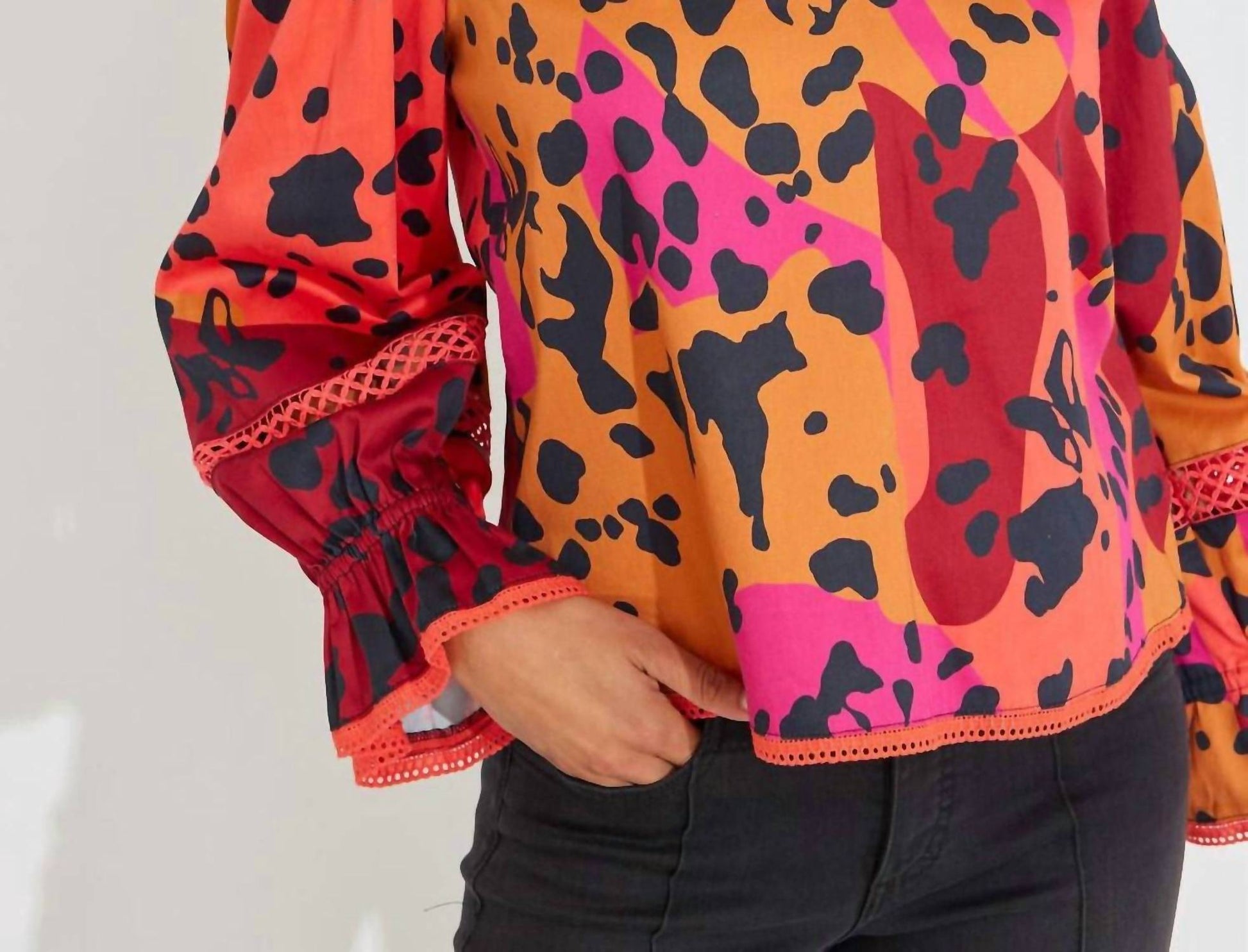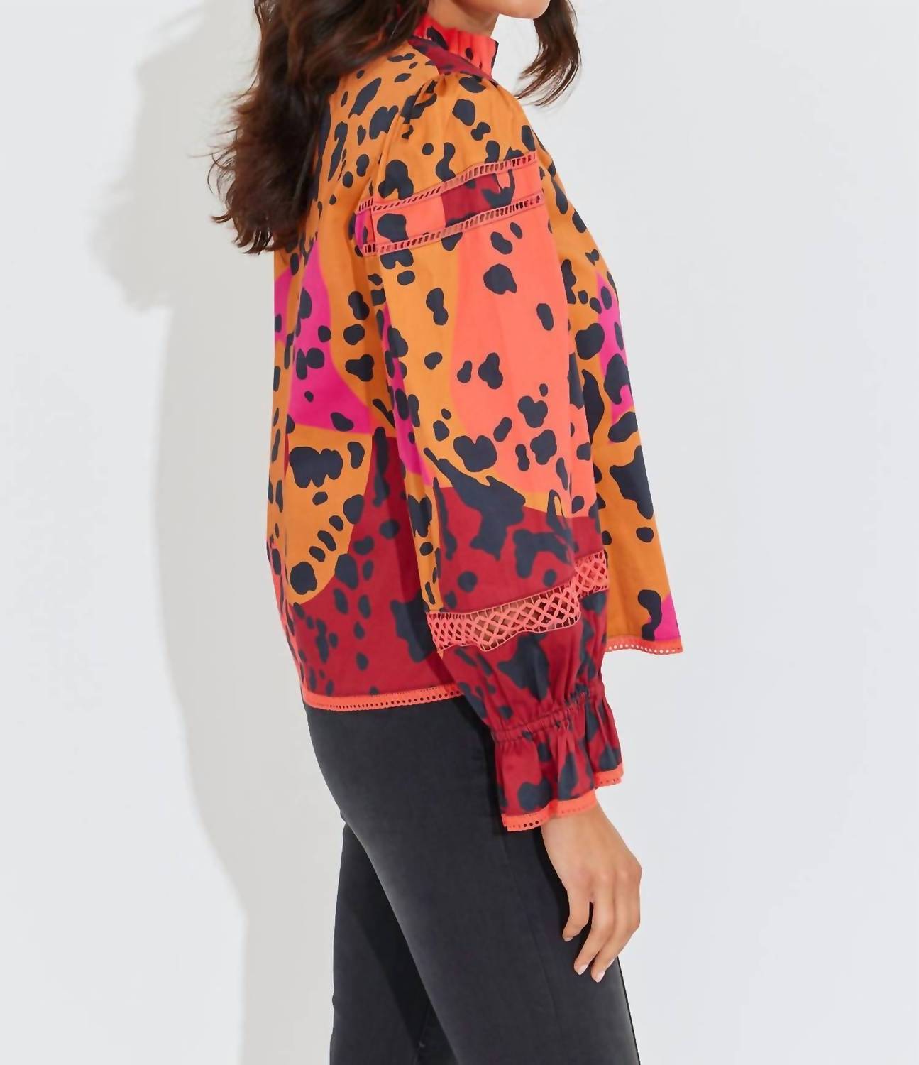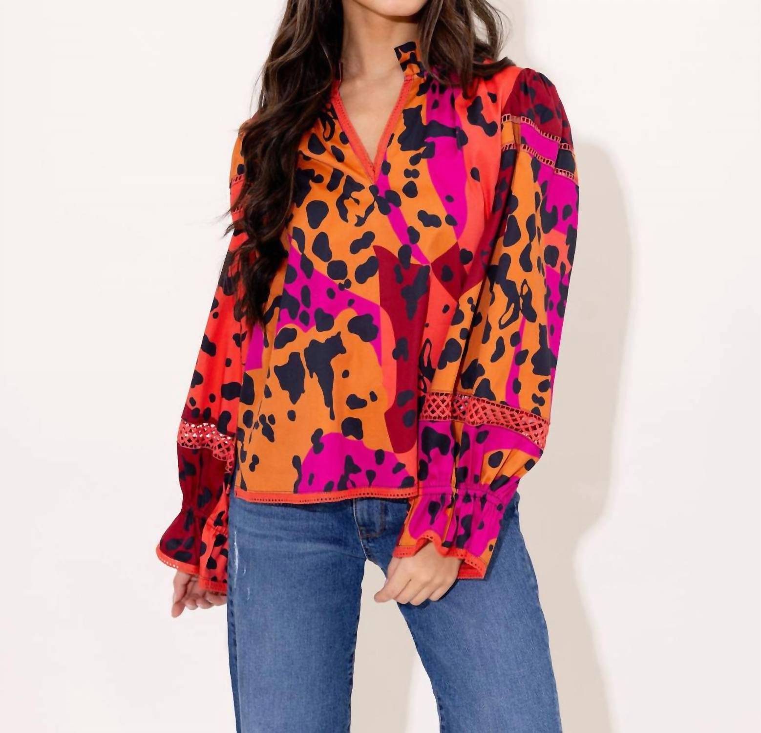 Pair this with your favorite jeans and slides for your next girls night out. Introducing the Vada Top by Alden Adair, a stunning piece in Panthera that perfectly embodies the Boho Chic trend. This long sleeve blouse is crafted from a soft cotton blend, featuring an elegant animal pattern ideal for your next holiday party. The convenient pull-on closure complements the V-neck design, making it a fashionable yet easy-to-wear option for spring occasions. Care is hassle-free with machine wash instructions, ensuring this top remains a favorite for Thanksgiving and beyond.