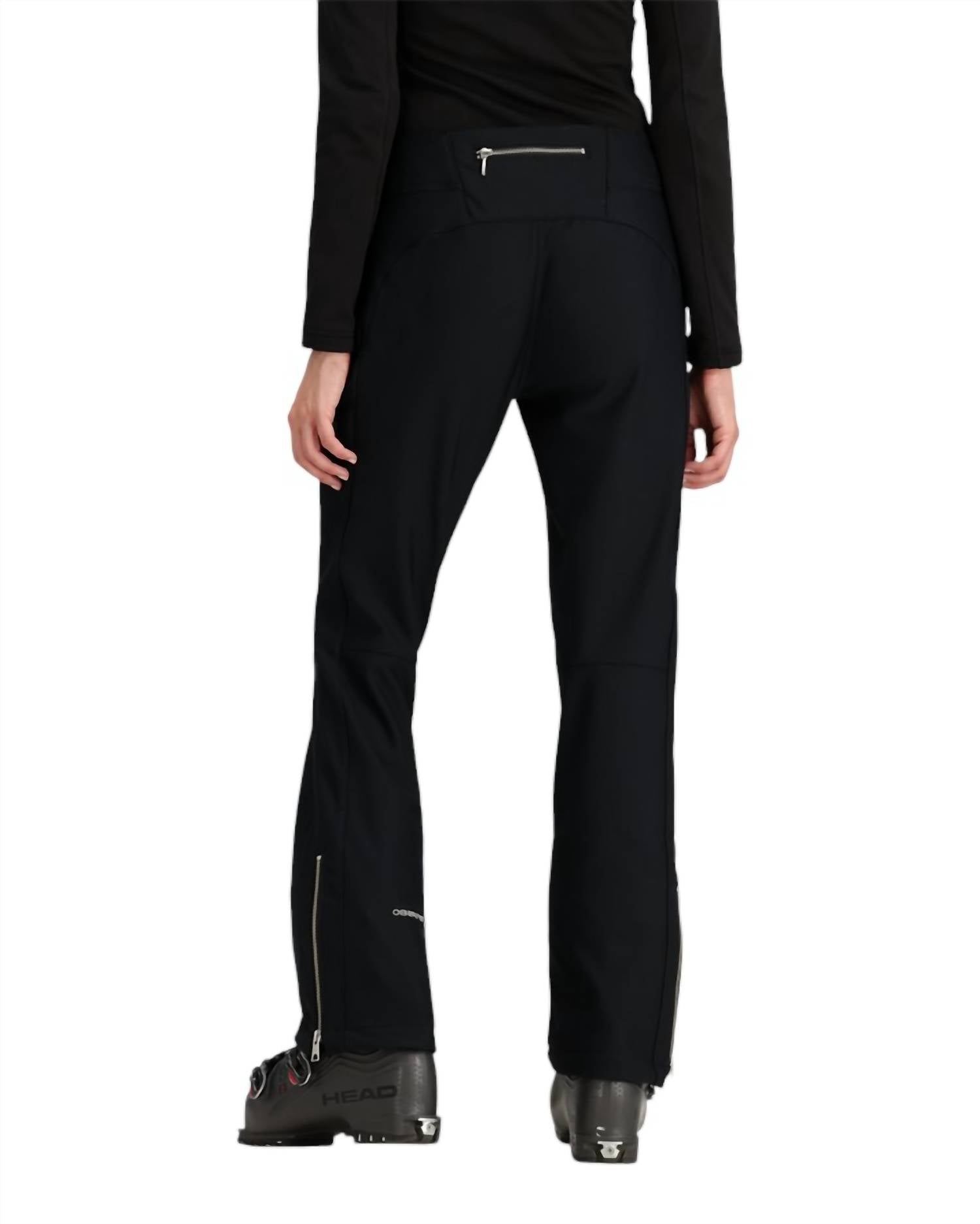 Introducing the Clio Softshell Pant by Obermeyer, a perfect blend of style and function for your active lifestyle. Crafted from durable nylon, these track pants feature a sleek straight leg design with a practical button closure. The pants showcase a solid black color, ideal for versatile wardrobe pairing. Enhance your athleisure collection with the low-rise waist and convenient pockets, all proudly made for women.