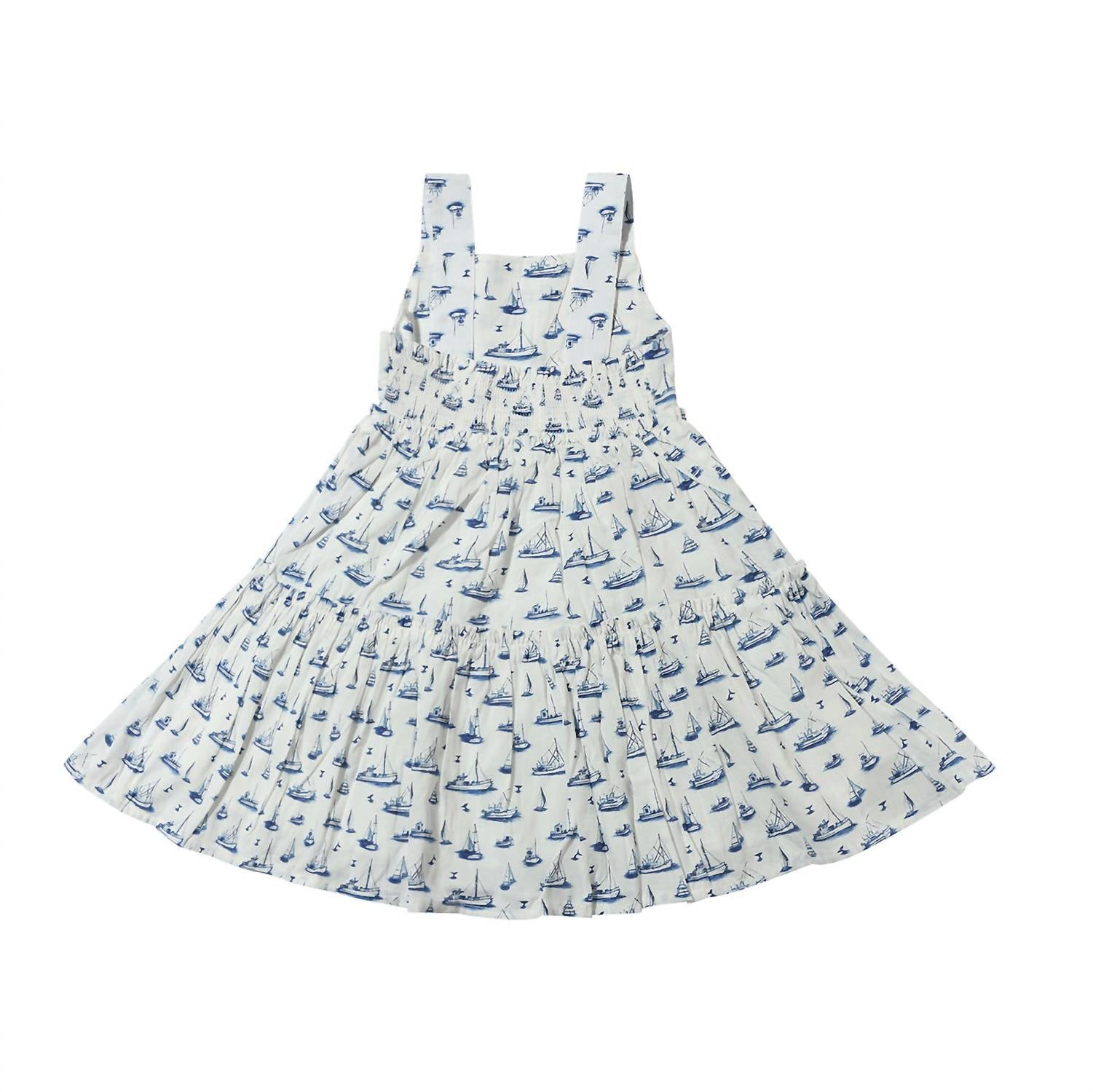 Meet the VIGNETTE Girl's Sloane Dress, a sleeveless A-line silhouette that celebrates summer with its nautical, graphic sailboat pattern in multi colors. Perfect for casual seaside strolls or vacation adventures, this dress offers a playful minimalist design to brighten your little one's wardrobe. Designed with a scoopneck for comfort and ease, this dress captures a carefree, joyful essence. Made without any fussy embellishments, it's best cared for with a simple hand wash.