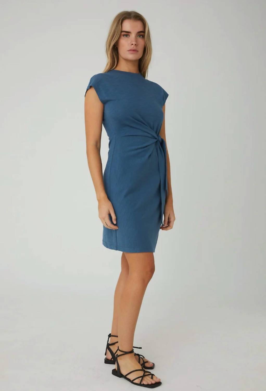 The kind of easy and flattering dress you'll be reaching for all season long. Introducing the River Mini Dress by JS71, a perfect blend of comfort and style crafted from 100% cotton slub in a solid indigo hue. This women's sheath dress features short sleeves and a crewneck, with a charming side tie closure that flatters the waist. Designed with a relaxed fit, it is ideal for both casual errands and more polished occasions. With its imported quality, this dress seamlessly merges ease and elegance.