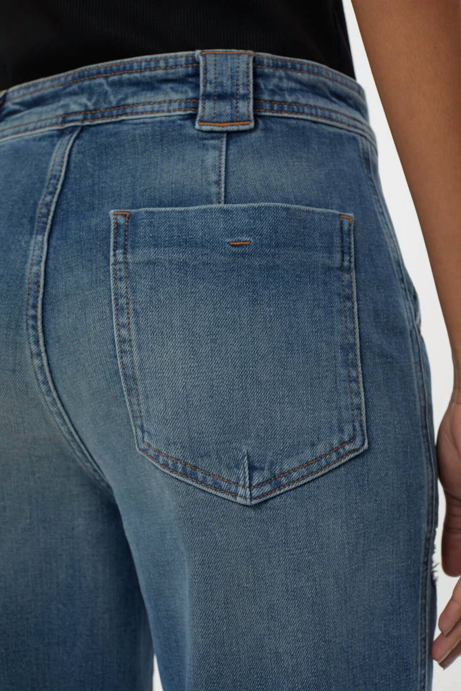 The trend report says boot-cut is in and that's exactly why we love this style. They are fit to perfection, flattering on any body type, and comfortable. They will be your go-to all season long. Introducing the Aria Jeans by CLOSED, a sophisticated addition to your wardrobe in a dark blue hue. Crafted in Italy from 100% organic cotton, these women’s flared-leg jeans feature a zip closure and convenient belt loops. With a high-rise waist, the jeans boast two side slit pockets and two rear patch pockets for practical elegance. Dimensions for size 27 include a 33.5" inseam, 9.4" front rise, and 11" leg opening. Care: Machine wash. Model is 5'9" and wears a size 27.