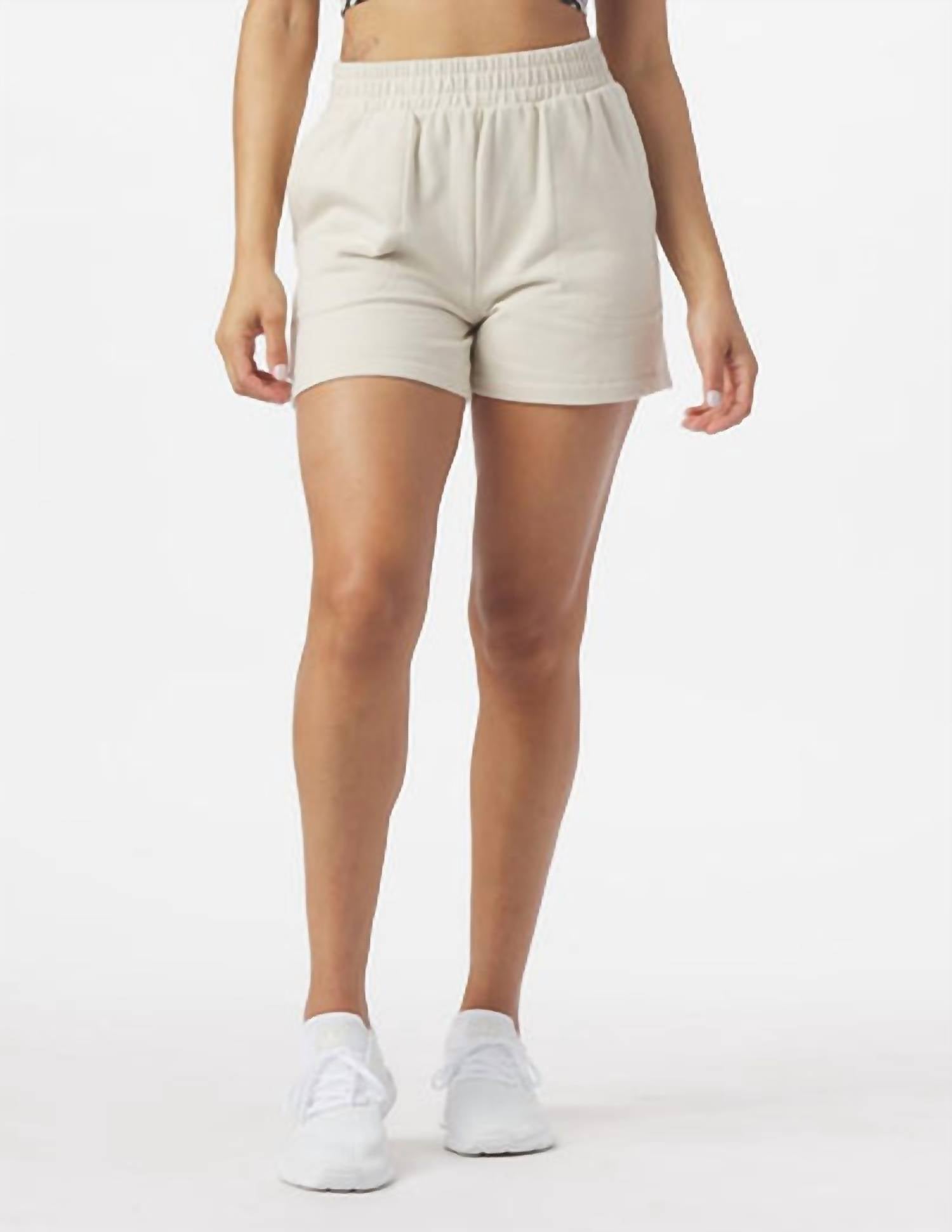 light weight and beyond comfortable, these athletic shorts are perfect for those warm weather days. Introducing the Vintage Oversized Sweat Short by Glyder, a perfect blend of comfort and eco-conscious style in Oatmilk. Designed with an oversized fit and high waist, these shorts offer a structured vintage cut and are crafted from soft PLUSH FLEECE™ fabric for ultimate coziness. They feature a pull-on closure, making them ideal for fitness or workout occasions in the athleisure trend. Enjoy the warmth of fleece with a brushed softness both inside and out.