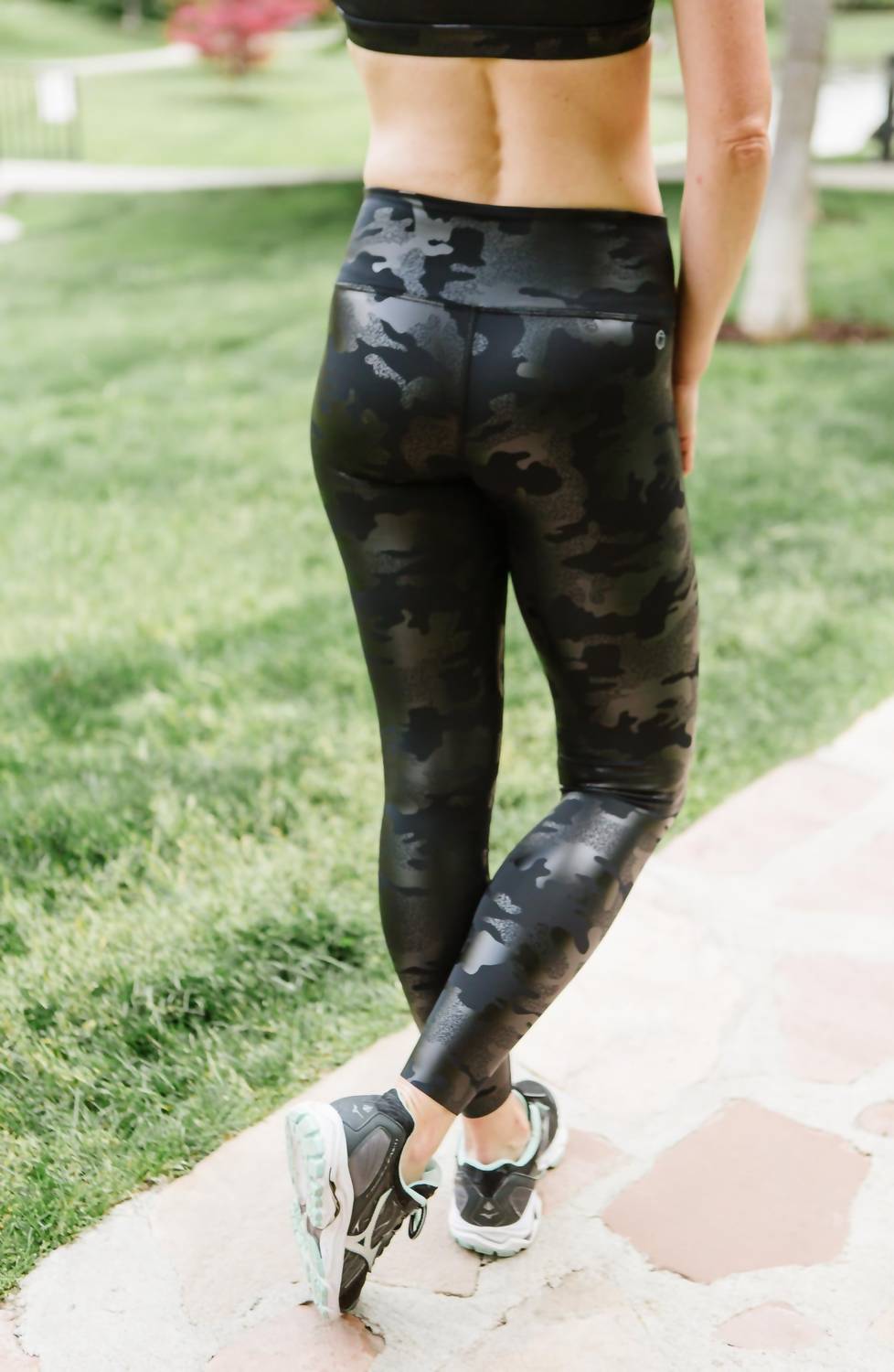Details: Engineered to lift, sculpt, contour and smoothWear-tested for the perfect fit4-way-stretch fabric for a move-with-you feelMoisture-wicking antimicrobial technologyNew micro-performance double knit fabricSecond-skin feelInseam: 22.5"Rise: 10"Pull-onHigh-riseMidi lengthBlack Foil Camo PrintModel Information:HeightBustWaistHipsWearing sizeCare Instructions:Machine wash cold, inside outLike colorsDo not use fabric softenerLay flat to dryDo not bleachDo not ironDo not dry clean