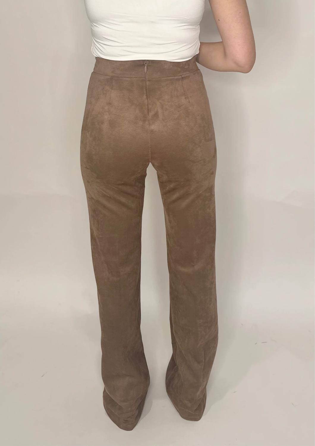 Introducing the Grace Trouser by Canvas Apparel, crafted in a luxurious heavyweight suede with stretch to ensure all-day comfort. These camel-colored trousers feature a high-rise design and a sleek invisible zip closure at the back. With a relaxed fit, they have a 34” inseam and a straight leg style that is tall-girl approved, offering a flattering, leg-lengthening effect. Perfect for both work and weekend wear, these solid pattern trousers do not have pockets and boast a smooth, soft-touch feel. Model is 5'5” and is wearing a size Small.