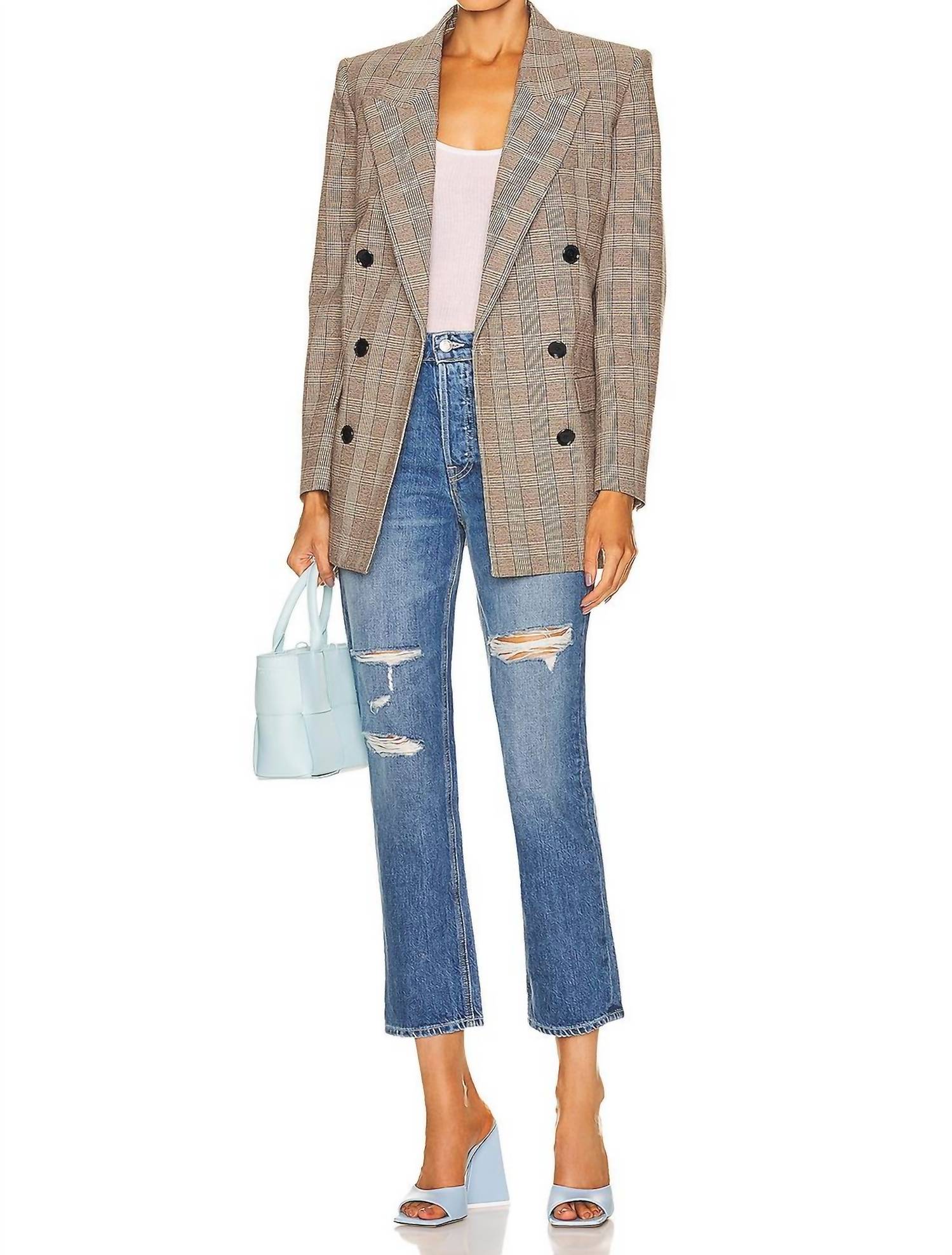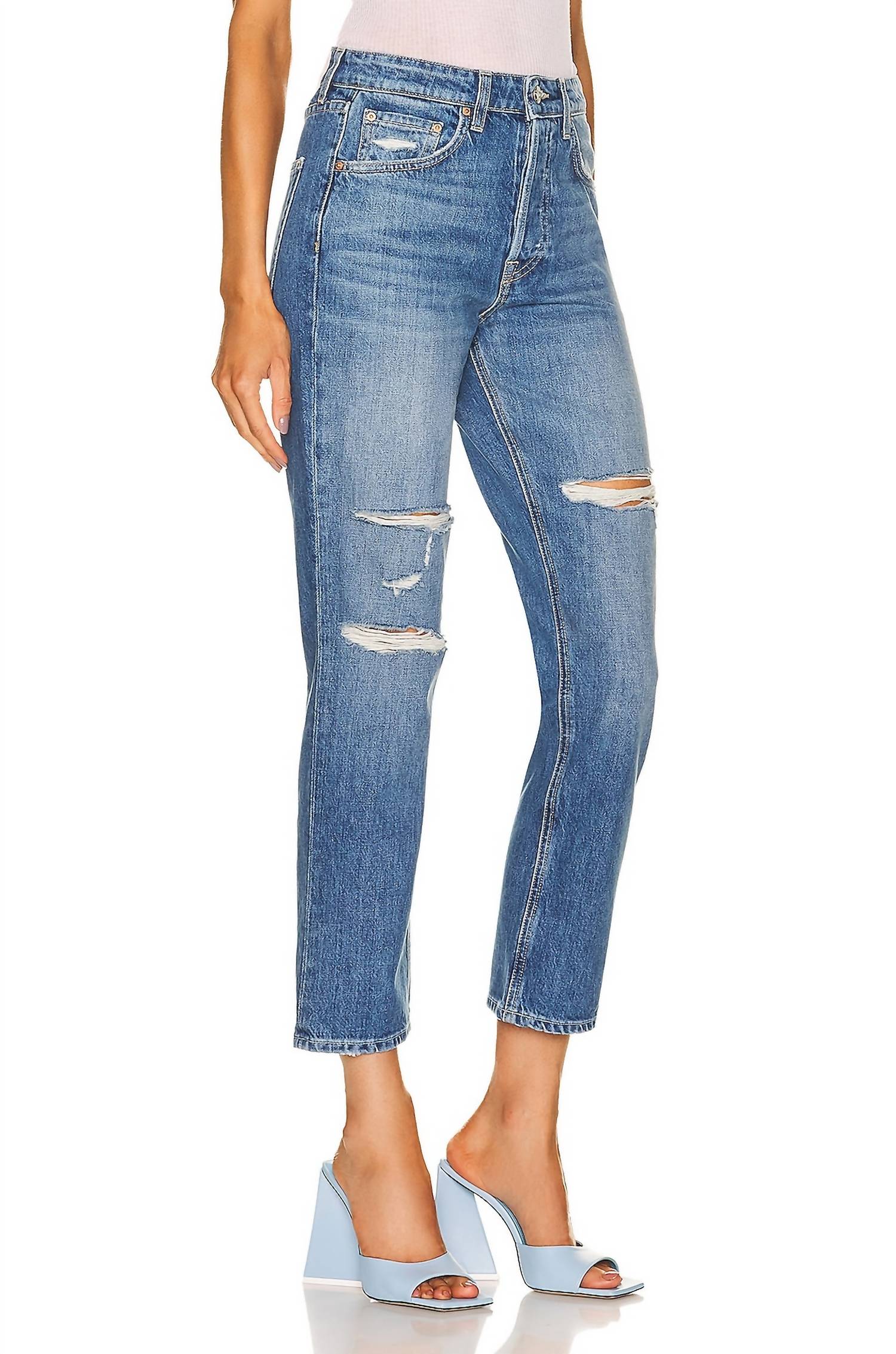 This classic straight leg jean has a perfect fit and goes with just about everything. Introducing the Karolina High-waisted Straight Jeans by GRLFRND, a stylish piece for your spring workwear collection in Sedona. Crafted from 100% cotton, these jeans are made in China with a zip closure and boast a regular fit and high rise for a flattering silhouette. Designed with functional 5-pocket styling, they feature light creases and destroyed details for a trendy look. Care for these medium-wash jeans is effortless, as they are machine washable.