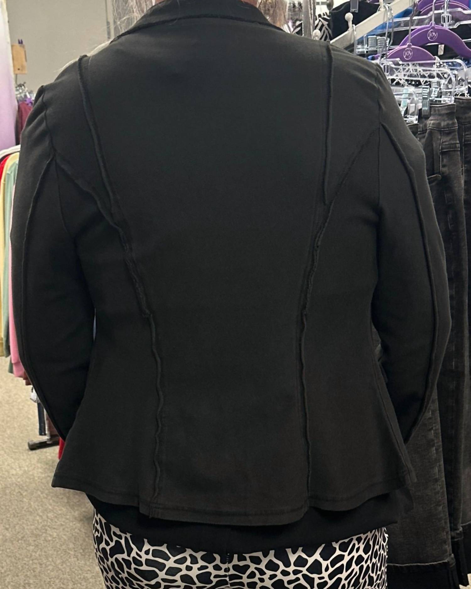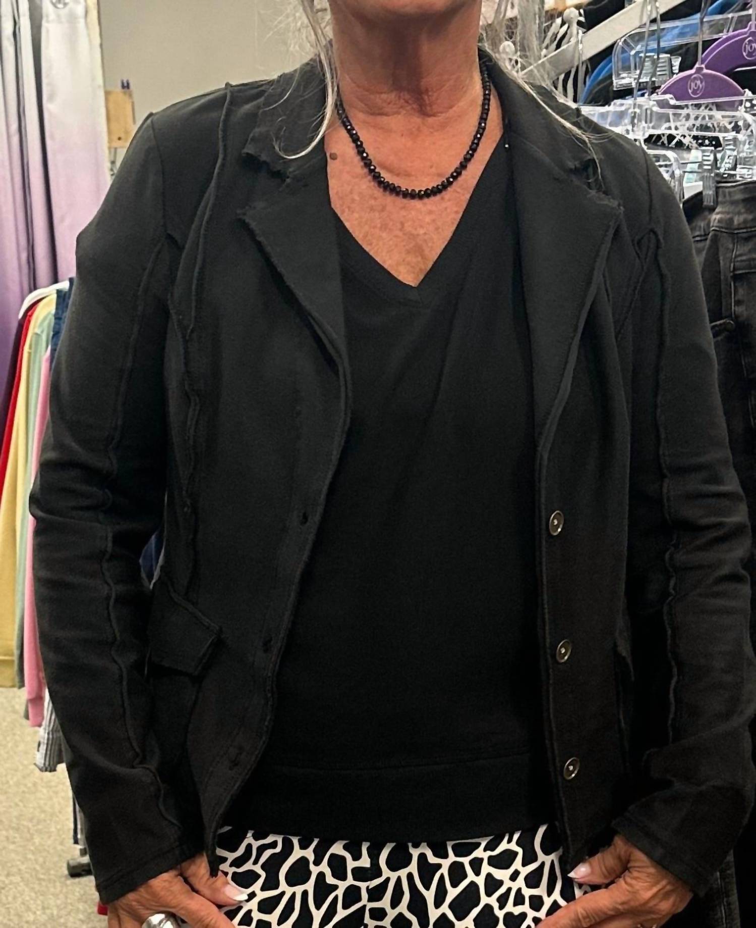A jacket so versatile you can literally wear it with anything. The Dunne Twill Knit Blazer by XCVI brings a refreshing twist to the classic blazer in a deep woodsy green color. With long sleeves and a flattering semi-cropped fit, this blazer is crafted from a comfortable cotton blend featuring 97% cotton and 3% spandex. Its textured pattern, button closure, and two envelope pockets make it perfect for any vacation or casual summer outing. Created with a polished yet unique silhouette, it's preshrunk for easy machine washing and safe tumble drying.