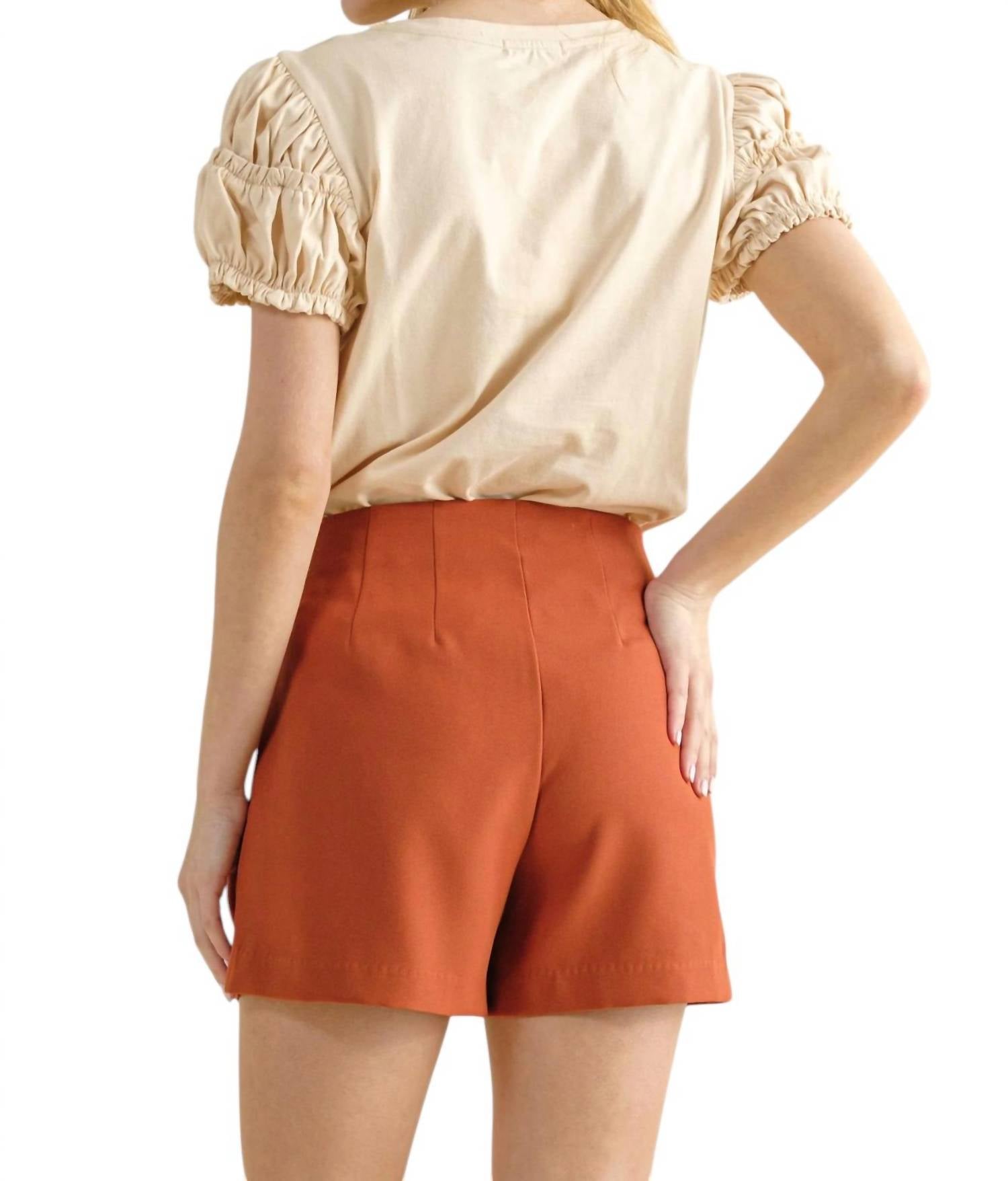 This top features puff-billowy short sleeves and a figure-skimming fit, designed for a pull-on style. Made of 100% cotton.