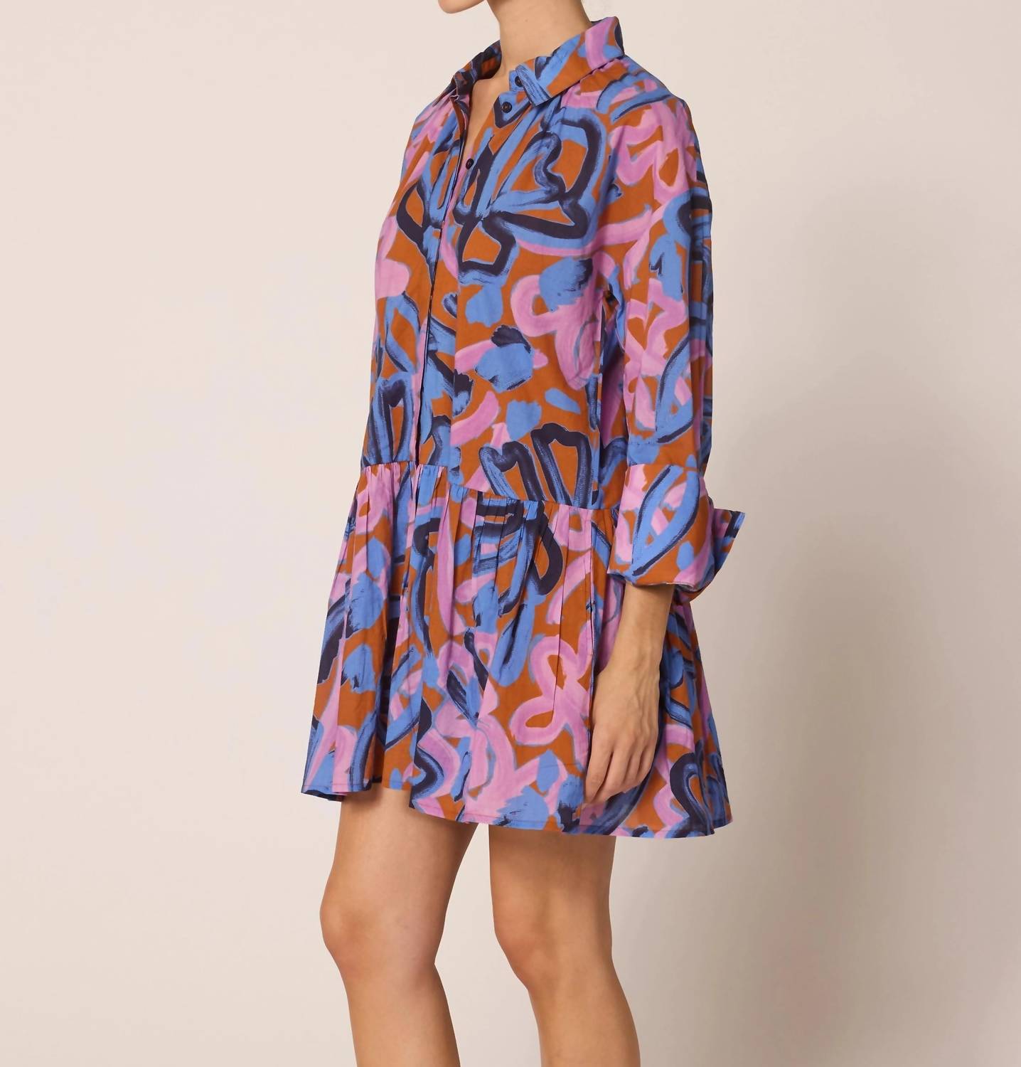 The perfect mini dress for those warmer months. Introducing the Audrey Mini Dress by Cleobella, an exquisite piece in a striking fresco print, perfect for a boho-chic holiday party. This mini dress features long sleeves and a classic collar, crafted from 100% GOTS certified organic cotton voile, ensuring both comfort and elegance. Ethically handmade in India, it boasts practical pockets, a button closure with a hidden placket, and a tiered ruffle detail at the skirt for added flair. Care for this sophisticated dress by hand washing it cold and laying it flat to dry to maintain its impeccable fit. Ana is 5'9.5" wearing a size S.