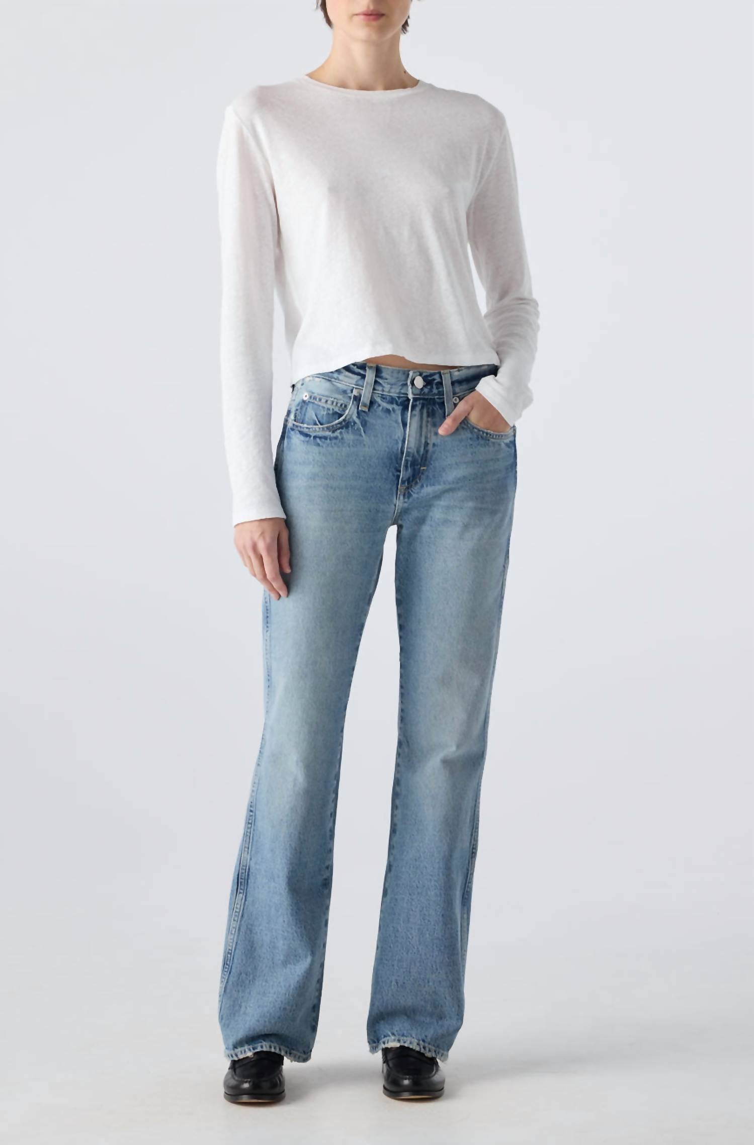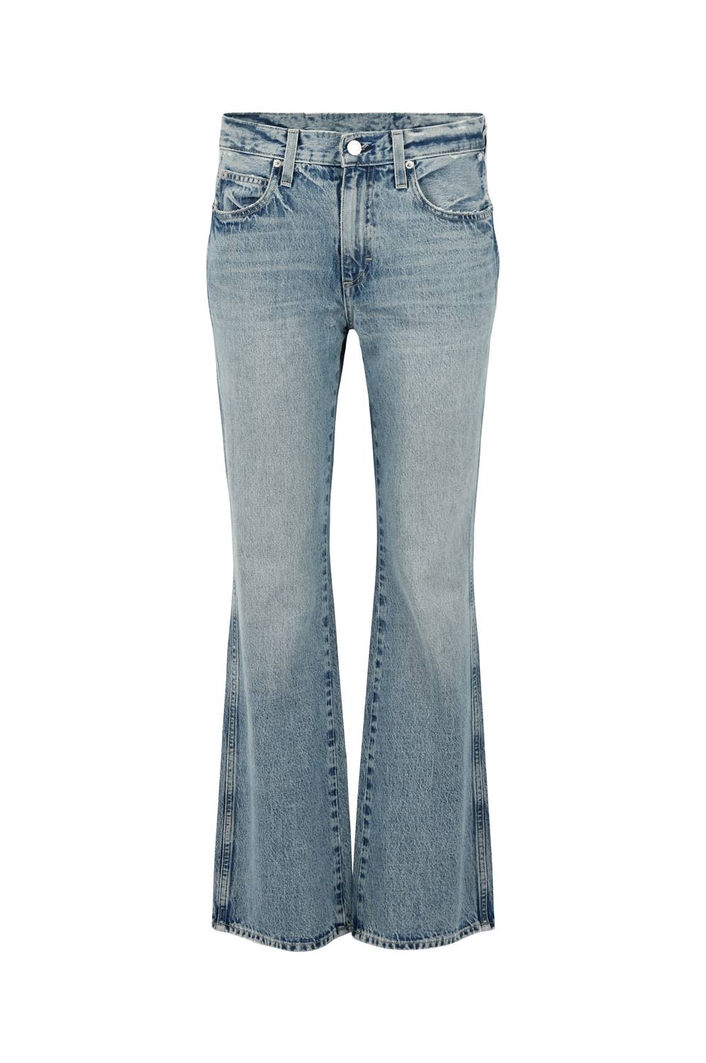Just add boots! Step into nostalgia with the Women's Marcenia Boot by AMO, capturing the essence of 90s fashion in a stunning medium wash blue. These bootcut jeans boast a relaxed rise, slouchy bootcut leg, with a low rise designed to sit comfortably at the hip. Crafted from 100% cotton, they feature a button closure and are thoughtfully made in the USA. Perfect for spring travels, they offer practical pockets and can be easily cared for with a machine wash. Inseam measures 32.5", with a front rise of 10.5" and a leg opening of 20", showcasing a fit that's true to size.