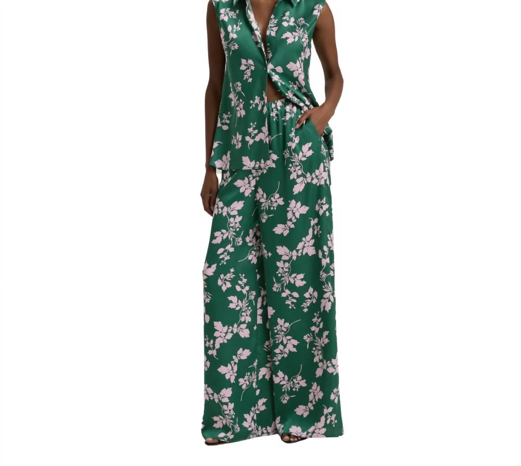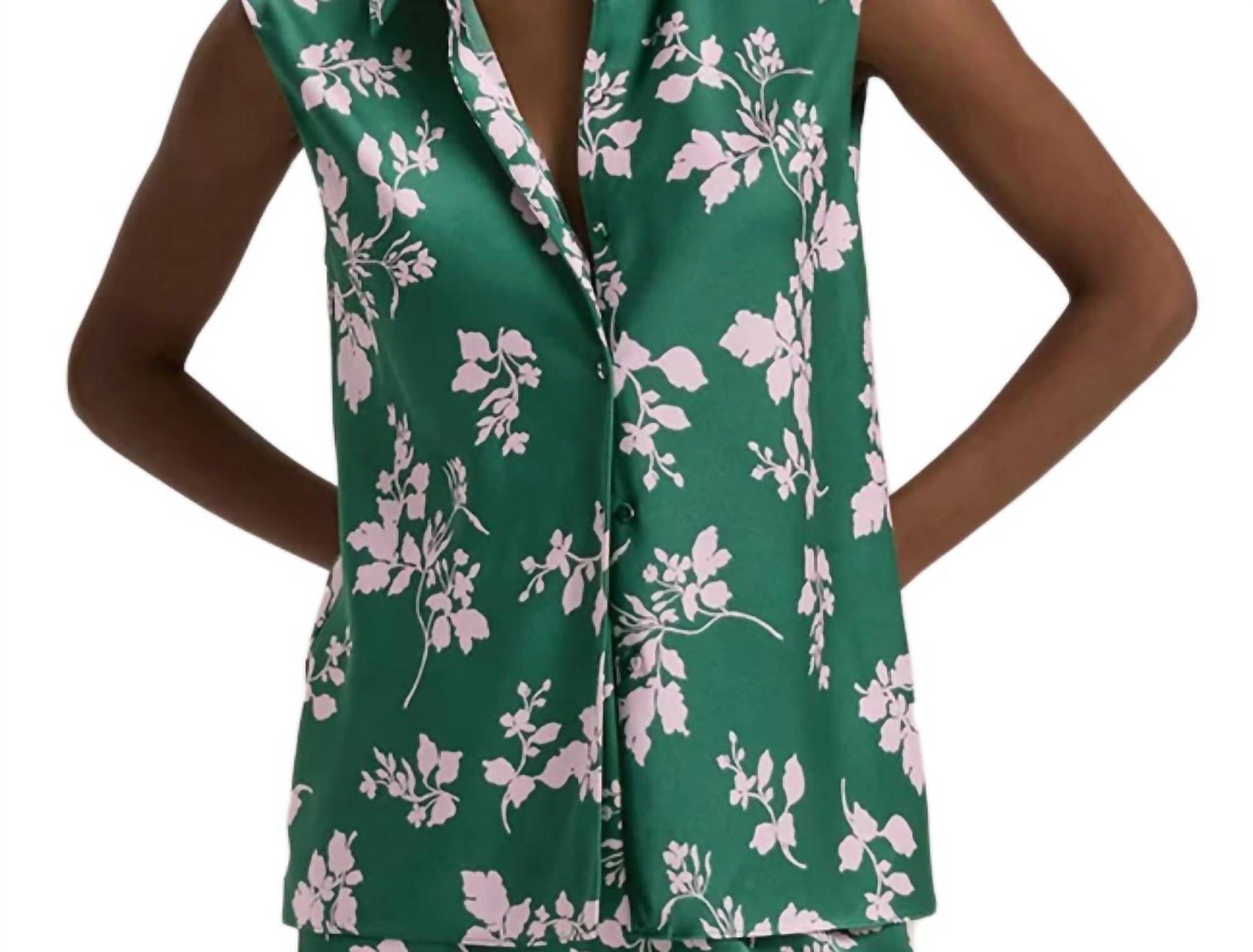 A timeless blouse that will never go out of style. Favorite Daughter  The Agatha Top Poly Satin Crepe in Emerald Floral Crepe satin shirt Button-up Collared Slim fit True to size