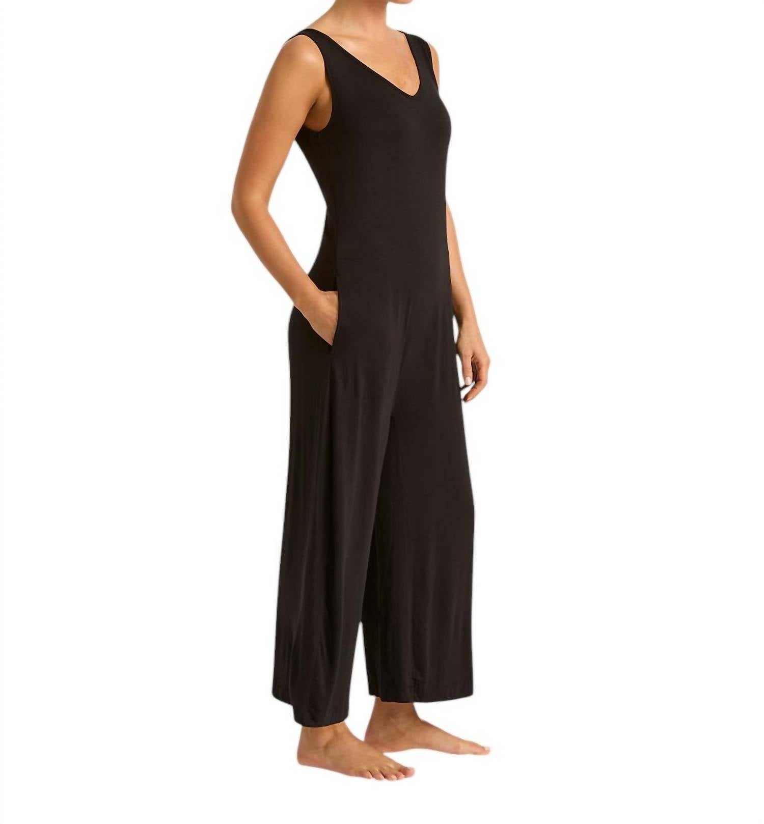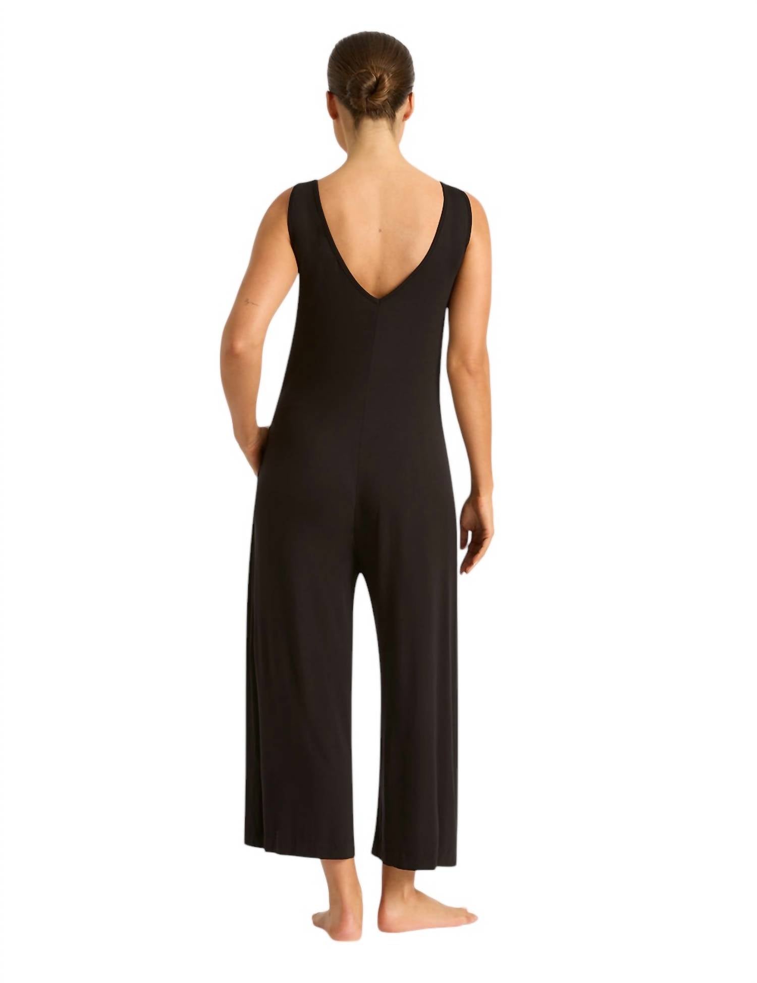 Discover the Long Jumpsuit from BOODY, expertly crafted for both comfort and style in a sleek black hue. This women's pantsuit boasts a solid pattern and is made from soft and breathable viscose material. Closure: Convenient pull-on style. Care Instructions: Machine wash and tumble dry for easy maintenance. Design features include a bootcut leg, complete with functional pockets for added practicality.