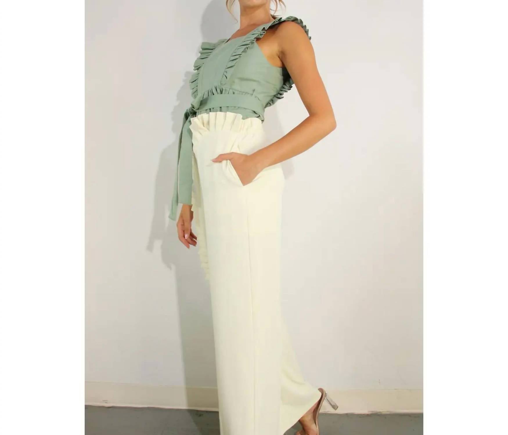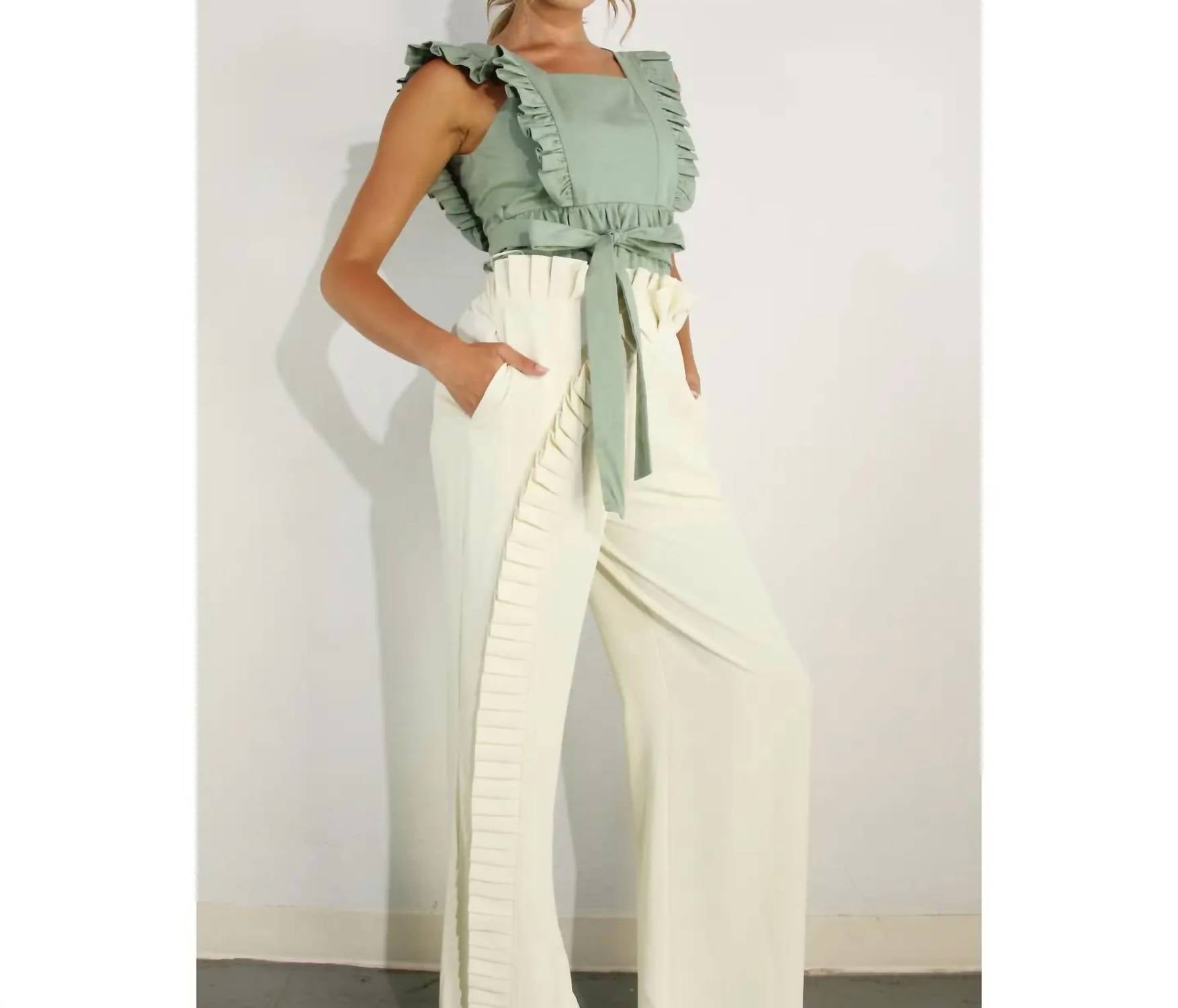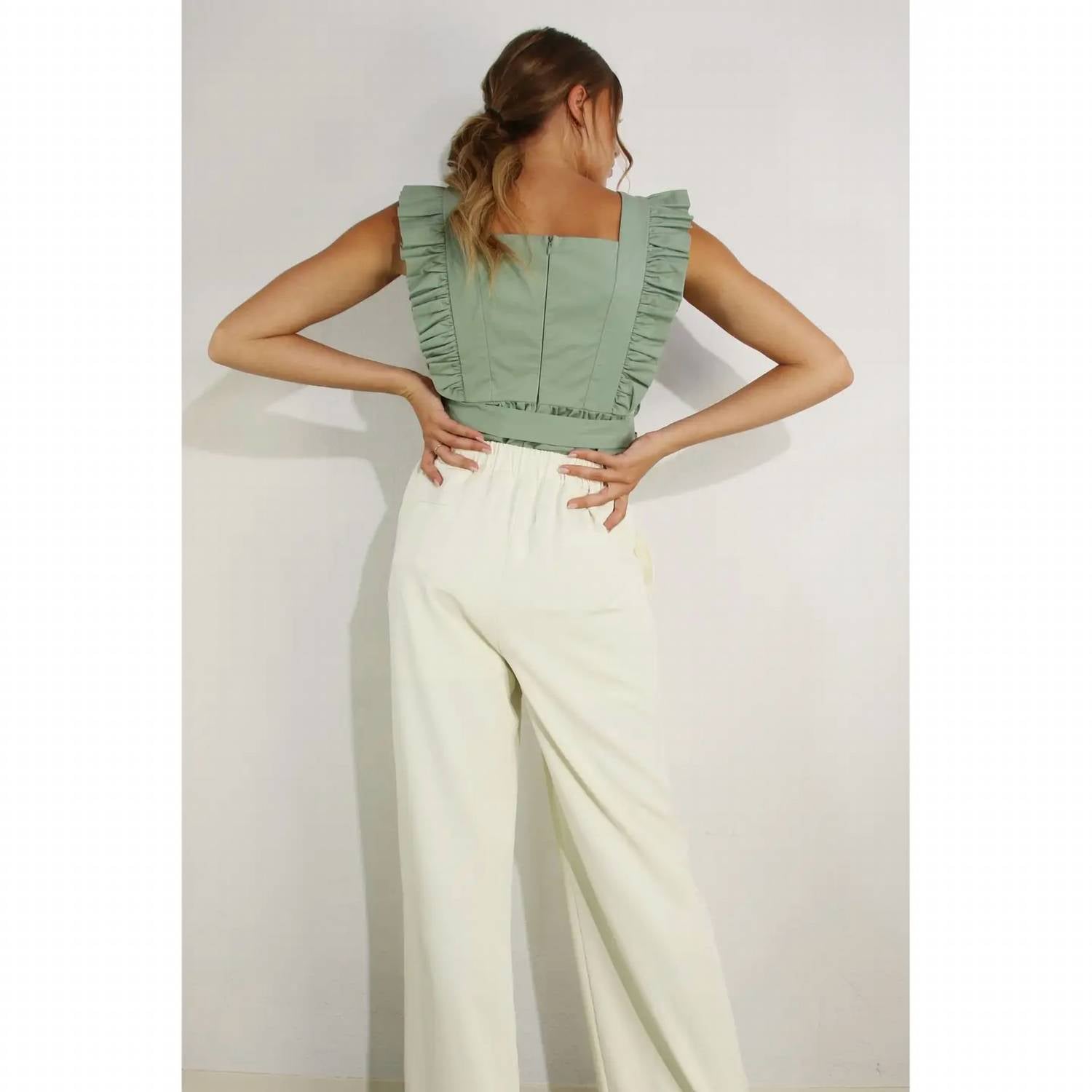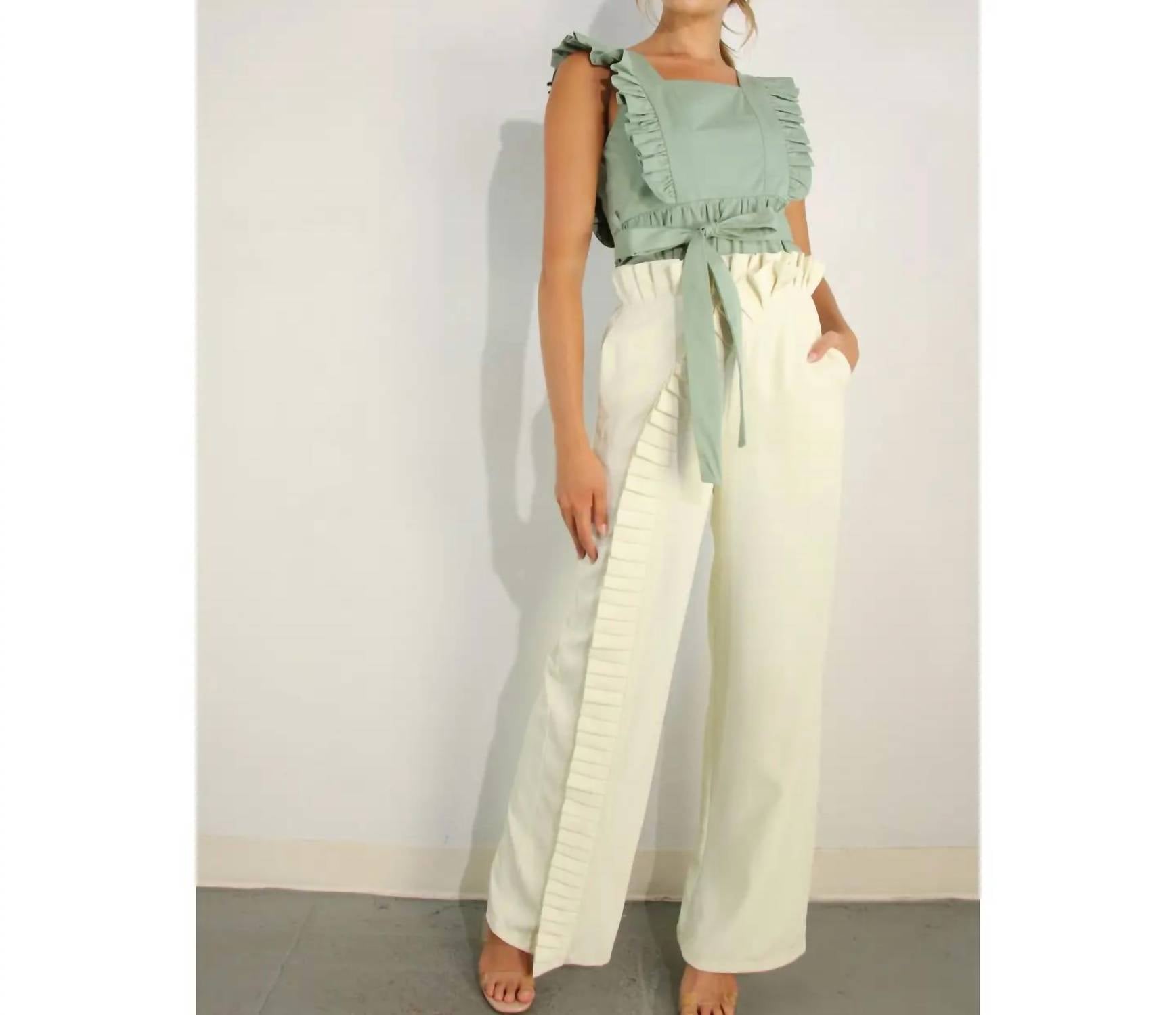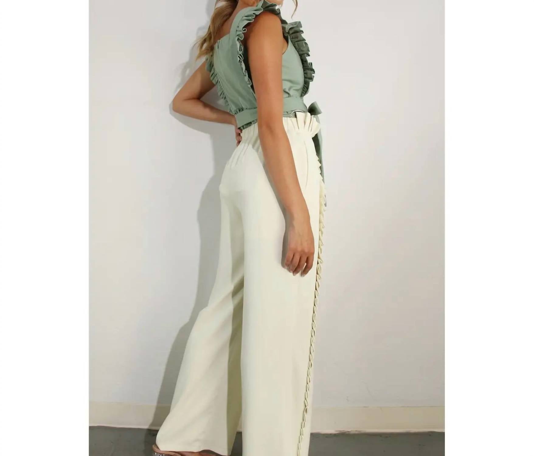 Elevate your fall wardrobe, designed in a chic cream color for versatile styling. Crafted for a comfortable fit. High-rise, wide-leg pants feature a relaxed fit and are perfect for a sophisticated workwear look. Enhanced with practical pockets, boast a solid pattern that effortlessly complements a variety of outfits. Care for these pants with a simple hand wash to maintain their pristine condition.