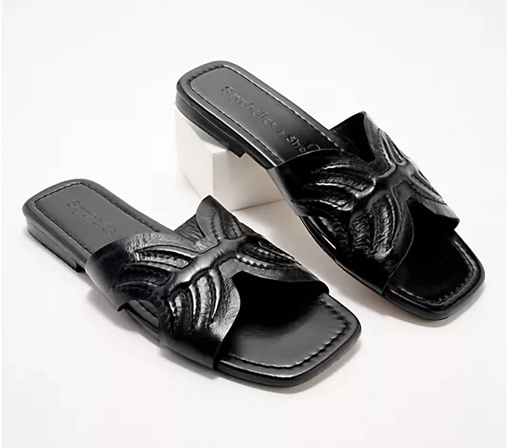 Classicly cute and all-day-wearable. We love this sandal. Experience the quiet luxury, meticulously crafted from burnished leather in a chic black. Feature a comfortable slip-on design with an open square toe and distinctive OrthoLite foam insoles for all-day comfort. With a flat heel of approximately 1" and a leather upper/lining paired with a man-made outsole. Perfect for any spring occasion, from holiday parties to sunny promenades. Embrace the boho chic trend with this versatile addition to your wardrobe.