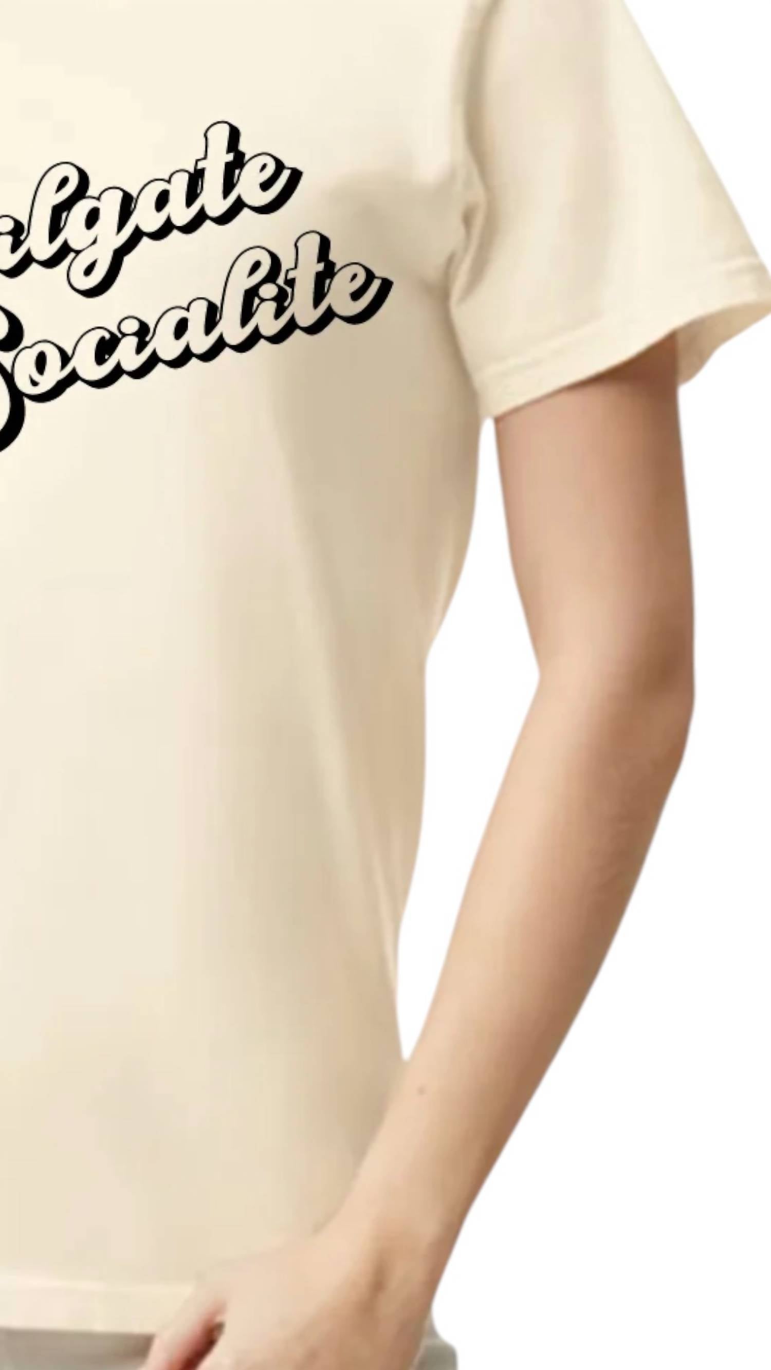 This classic, short sleeve tee will be your go-to staple this season and beyond. The Tailgate Socialite Graphic Tee by Comfort Colors brings both comfort and style in a chic beige hue for all your tailgating adventures. With a classic short sleeve design and a graphic pattern, it’s the perfect choice for cheering on your team. Crafted as part of Comfort Colors' line of Adult Heavyweight RS T-Shirts, it features a crewneck and a convenient pull-on closure. Origin details and washing instructions are not provided.