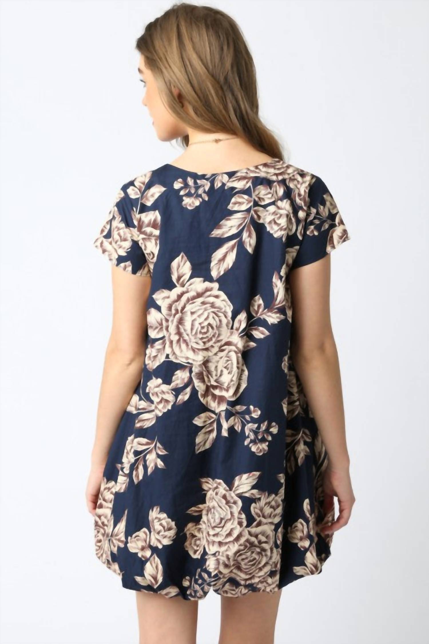 Comfortable and cute, this casual day dress has it all. The OLIVACEOUS Drea Floral Bubble Dress in Midnight Blue Cream is an effortlessly chic piece that brings a playful touch to your wardrobe. This shift dress has short sleeves and a modern bubble hem, perfect for an on-trend boho chic look. Composition: Cotton. Closure: Pull-on. Its floral pattern and classic crewneck make it ideal for a summer dinner party.