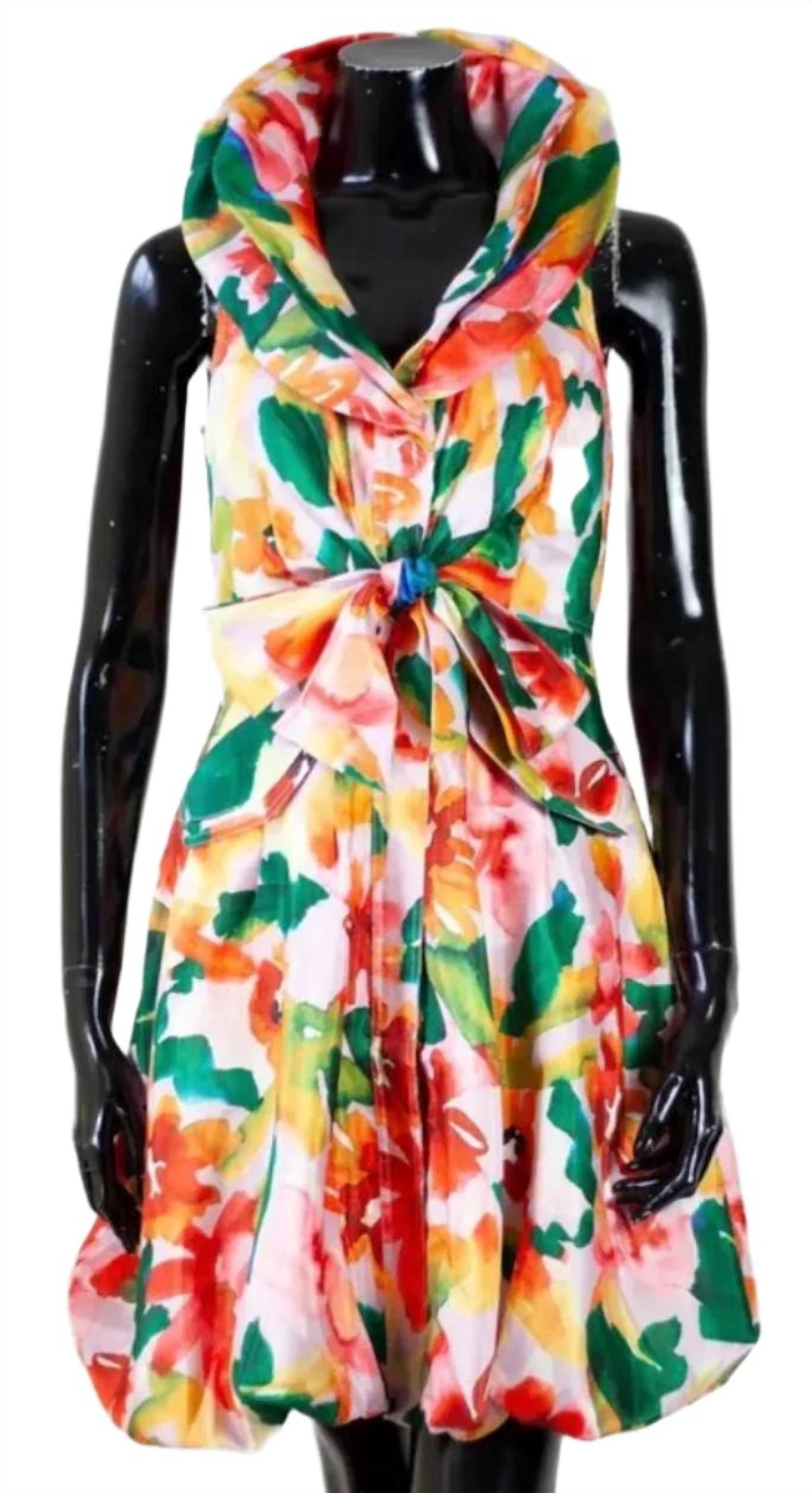 The perfect mini dress for those warmer months. Introducing the Samuel Dong Women's Print Bubble Dress, an eye-catching piece in vibrant Orange Multi that's perfect for cocktail parties and Mother's Day. This sleeveless, A-line mini dress boasts a unique double wired collar, practical pockets, and a flattering V-neckline accented by a front zip closure. Designed to make a statement with its patterned fabric, it embodies a chic springtime aesthetic. Ideal for the modern woman seeking both style and functionality.