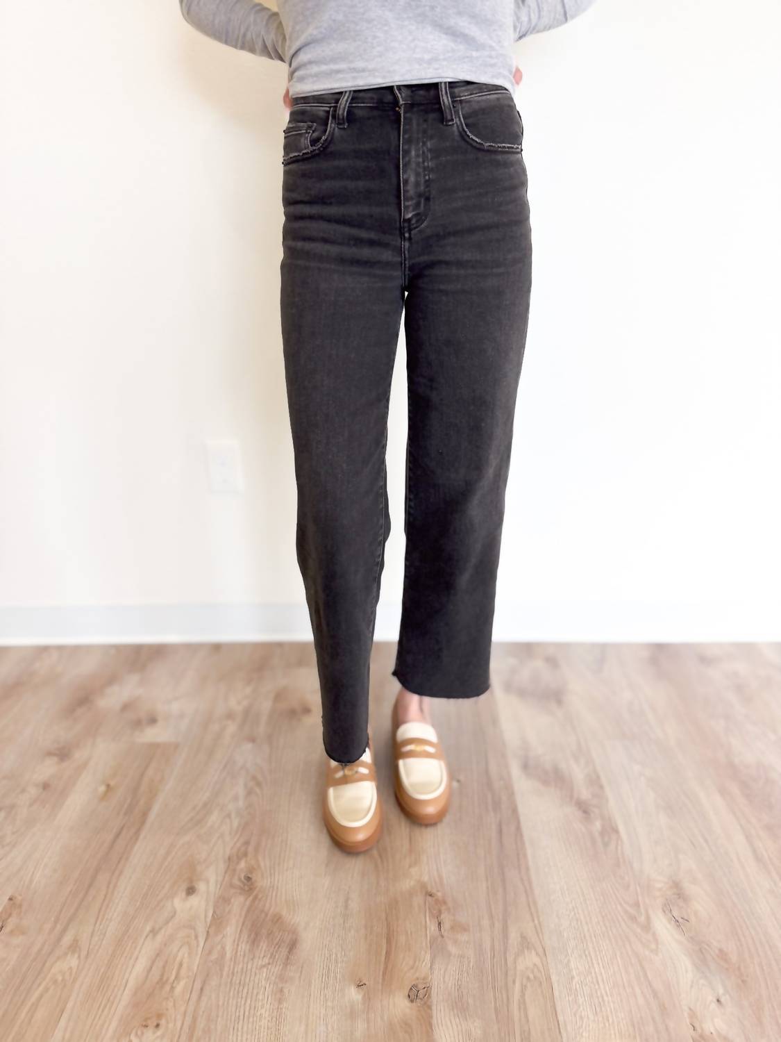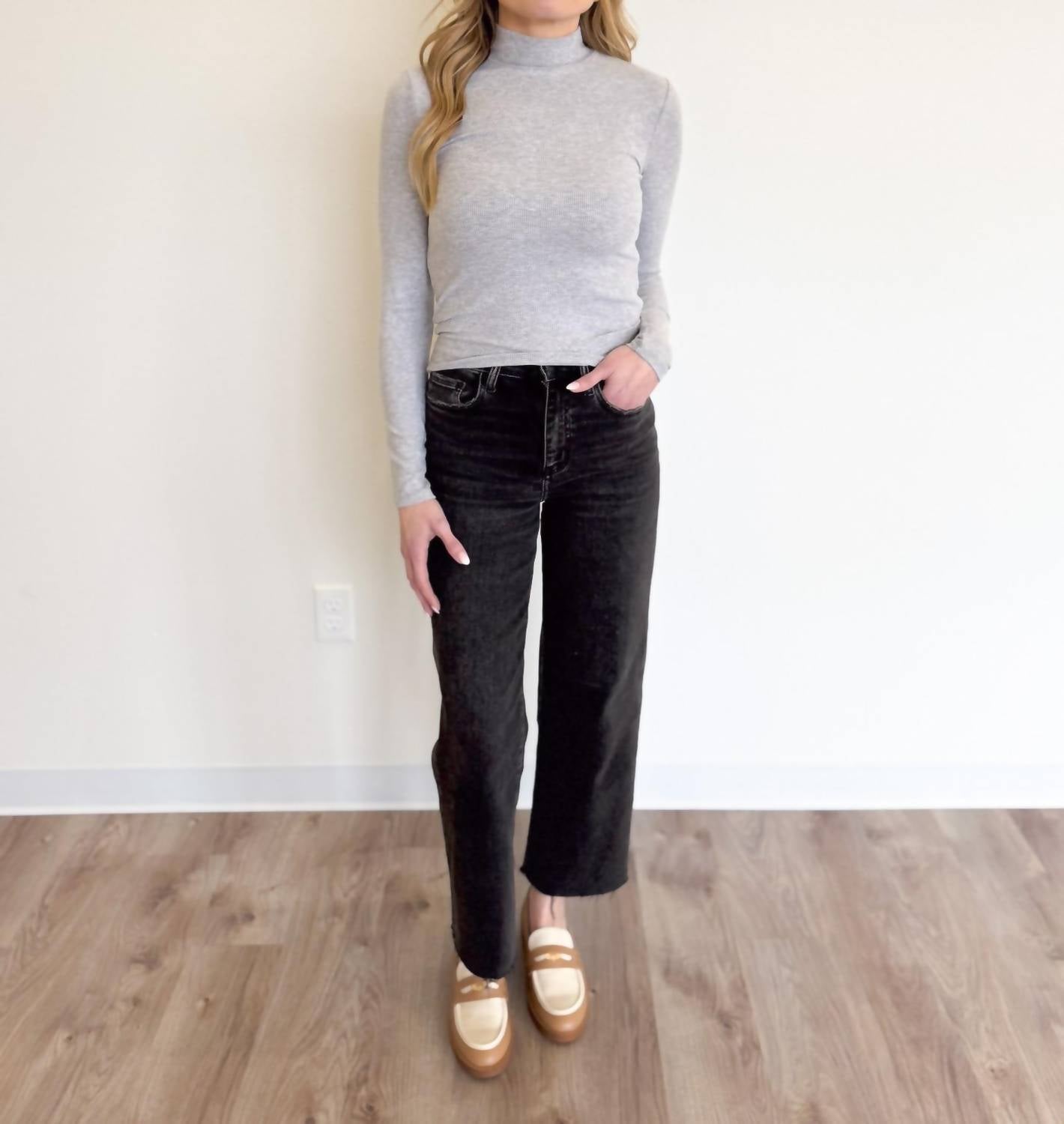 A flattering silhouette that's suprisingly versatile. Enhance your denim collection with the Estelle Wide Leg Jeans by DAZE, crafted in solid grey denim for stylish versatility. These ankle-length jeans sport a high-rise waist and a comfort fit, offering a flattering look with a straight leg style. Featuring a classic button closure and functional pockets, these jeans are designed for both comfort and trend-forward style, ideal for workwear or Back to School occasions.