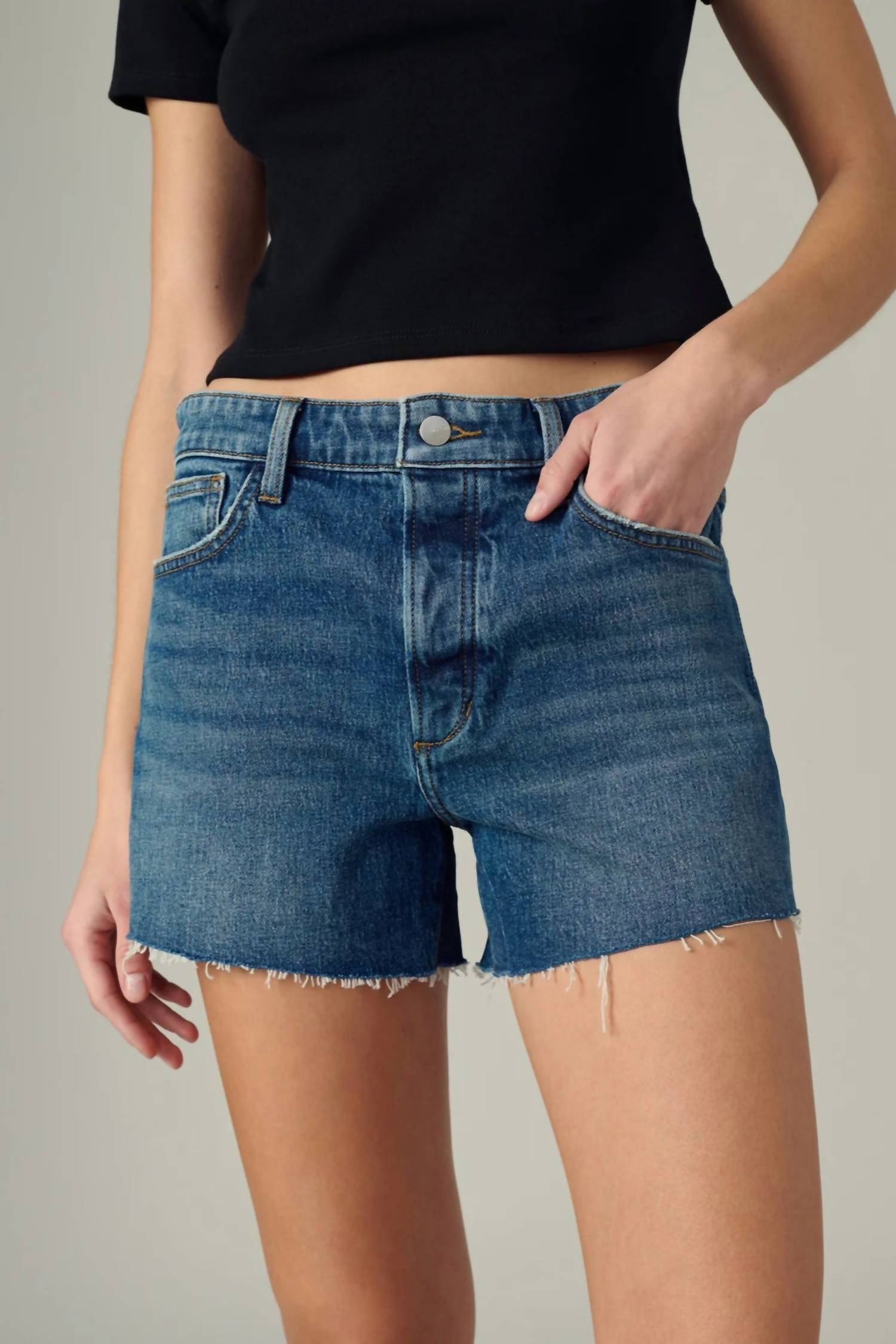Jean shorts so versatile, you can literally wear them with anything. Discover the Jessie Relaxed Short in Bad Apple by Joe's Jeans, a perfect blend of comfort and style for the summer season. Crafted from a 99% Cotton, 1% Elastane Blend, these Women's jean shorts feature a fashionable high rise of 11 inches and a secure button closure. The trendy fray hem, dropped rise, and relaxed fit through the waist and thigh make for an effortless minimalist look. With practical 5-pocket styling, these shorts promise to be a chic addition to your holiday party wardrobe.