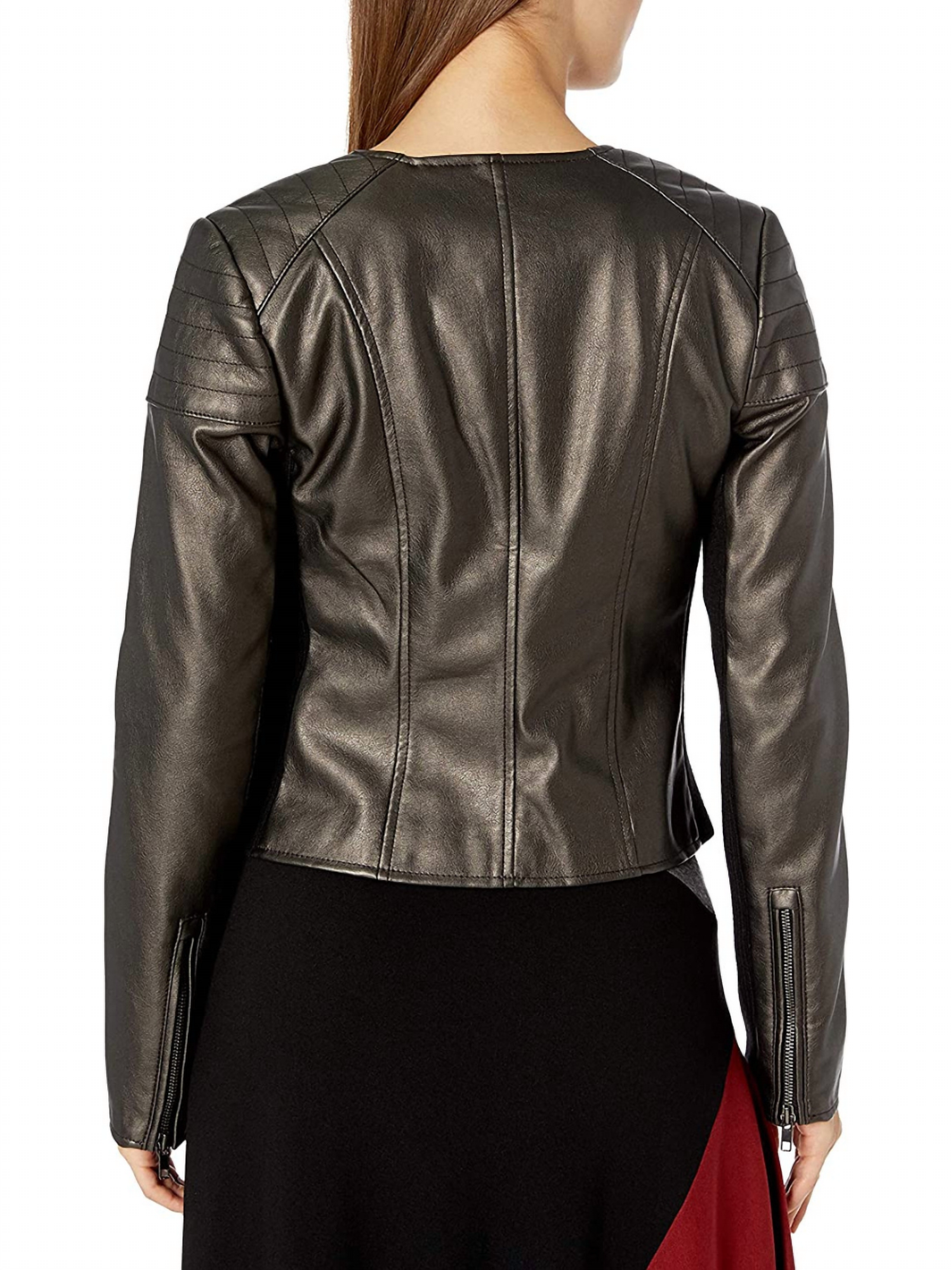 FAUX LEATHER WITH QUILTING DETAIL ON SHOULDERS