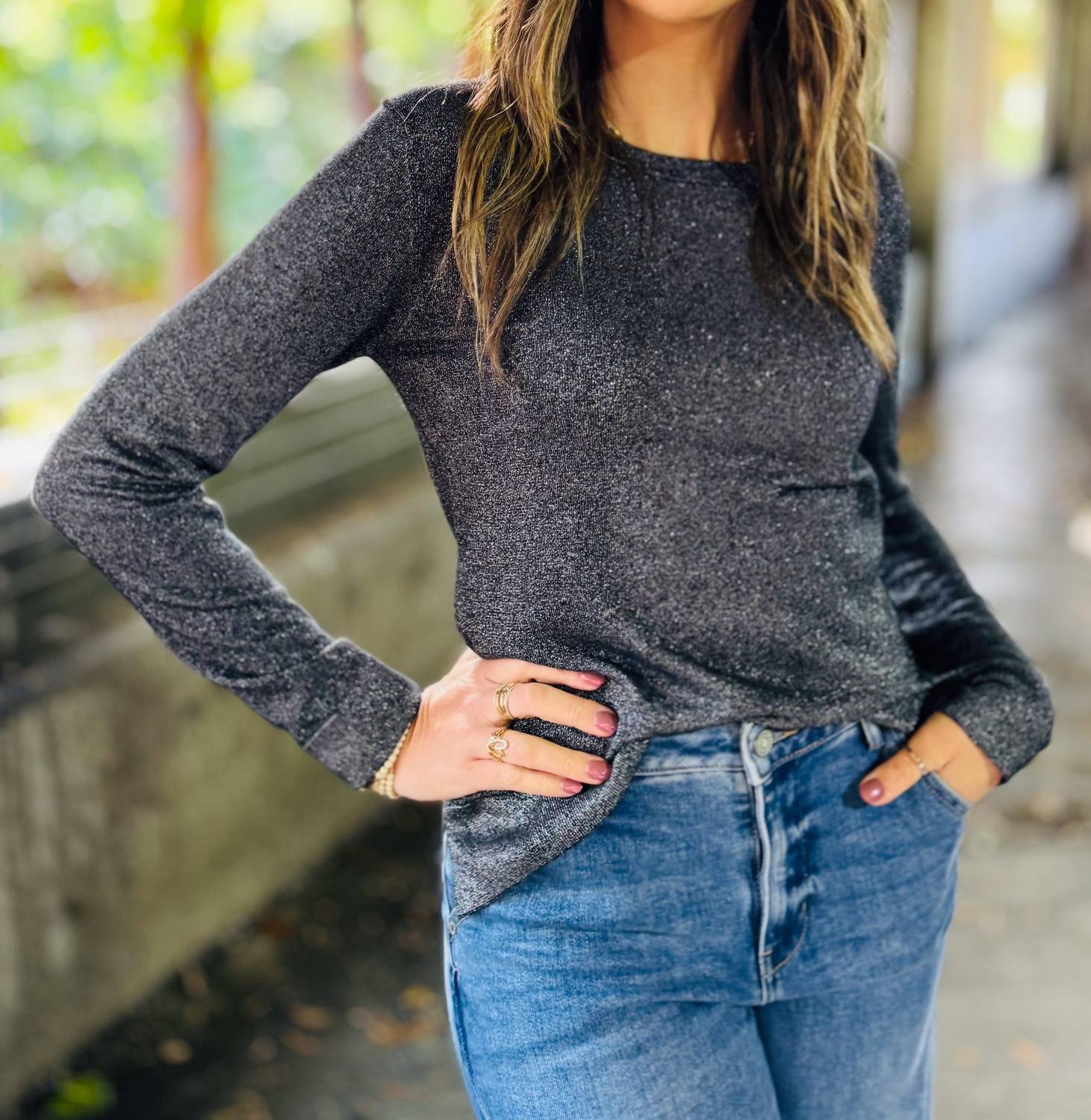 Pair this with your favorite jeans and slides for your next girls night out. Elevate your fall wardrobe with the Pure Amici Crew Neck W/Lurex Blouse in a classic black hue. Crafted from a luxurious cotton blend composed of 70% Cotton, 20% Nylon, and 10% Silk, this long sleeve top offers a solid pattern for versatile styling. Its pull-on closure ensures ease and comfort, making it ideal for travel. Perfect for women's fashion, this elegant blouse requires no special wash or dry instructions.