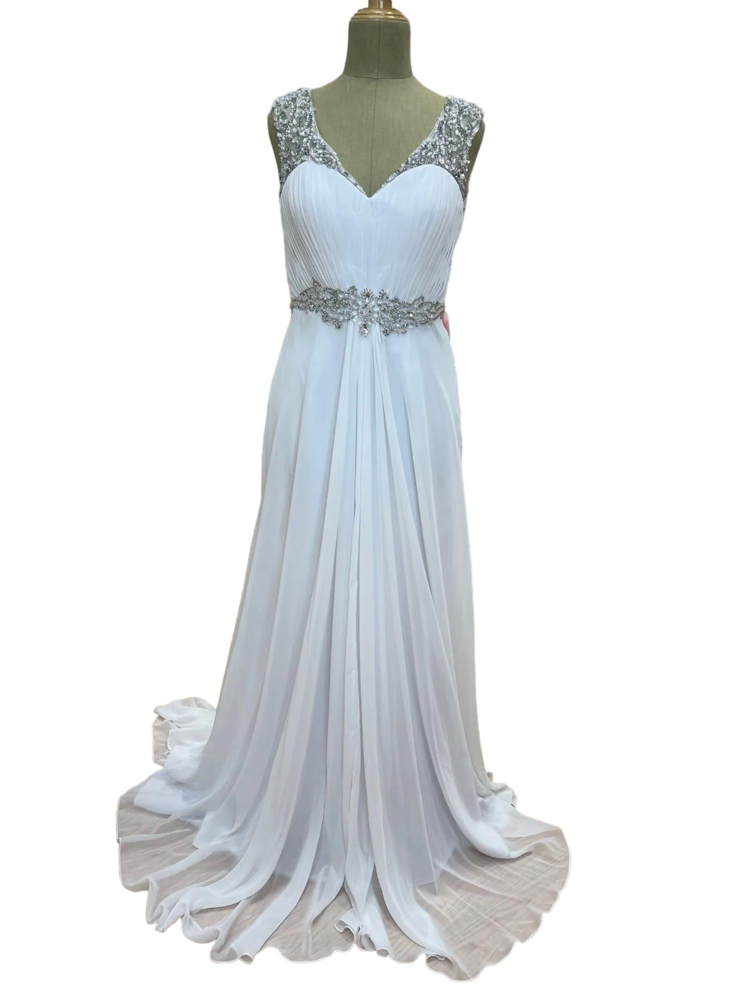 Step into your fairy tale moment with the Women's Beaded Sweetheart Wedding Dress by Mary's Bridal, a stunning piece that promises to make your special day unforgettable. This ethereal gown in a divine white/silver hue exudes elegance with intricate beadwork that glistens as you move. The sweetheart neckline creates a romantic and timeless silhouette that's perfect for the modern bride who cherishes classic glamour. Whether you're walking down the aisle in a grand cathedral or saying 'I do' in an intimate garden, this exquisite wedding dress by Mary's Bridal will make you feel like royalty. Measurements: Bust - 37", Waist - 30", Hips - 40".