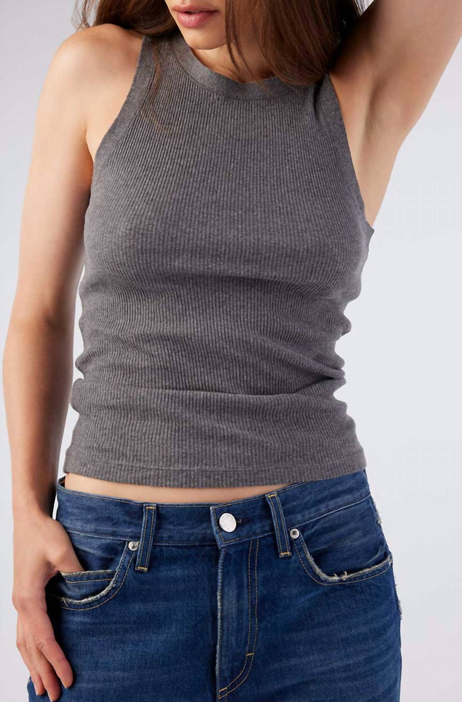 The perfect tank top for those warmer weather seasons. The AMO Swoon Tank in Heather Grey is a stylish, sleeveless essential crafted from 100% cotton, offering a silky feel perfect for summer. Designed with a high, crewneck and cutaway armholes, this fitted ribbed racerback tank is made in Portugal, ensuring quality craftsmanship. It measures 24 inches in length and 17 inches in chest width, based on a size Small. Convenient pull-on closure and machine wash care make it ideal for versatile wear, whether as a standalone piece or layered.