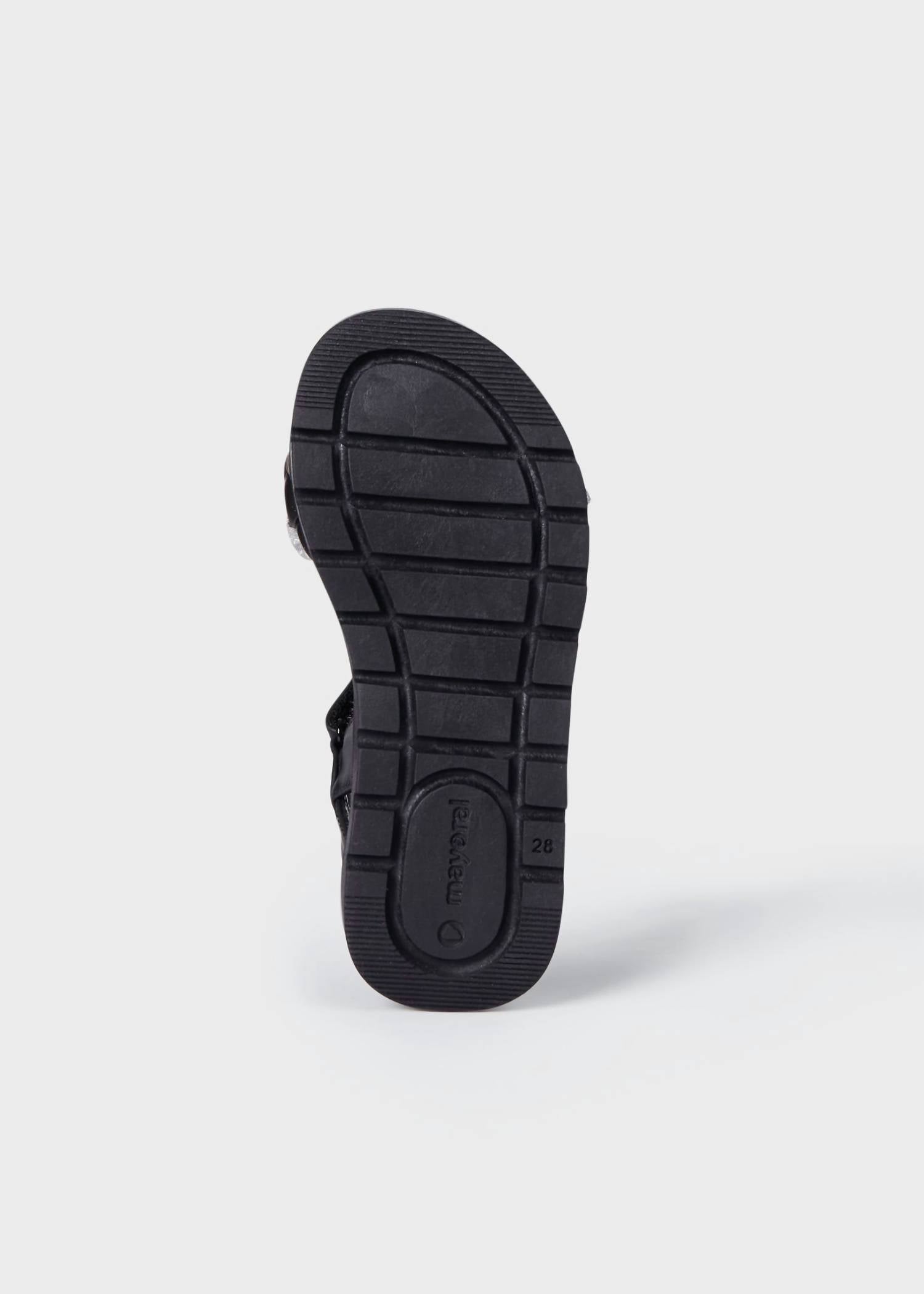 Step into style with the Mayoral Big Girls' Puffy Braid Sandal, perfect for her next summer holiday party. These sandals, with their round toe design and adjustable velcro and buckle ankle closure, feature a standout puffy braided strap in black metallic with mixed metal accents of rose gold and glittery silver. The sandals are crafted with a 56% Polyurethane and 44% Polyamide composition at the court and instep, a 100% Pigskin lining and insole, and a 100% Thermoplastic Rubber filling, ensuring a comfortable fit with a padded leather insole and a slip-resistant lug sole. These flat heel sandals are designed specifically for kids who appreciate minimalist trends.