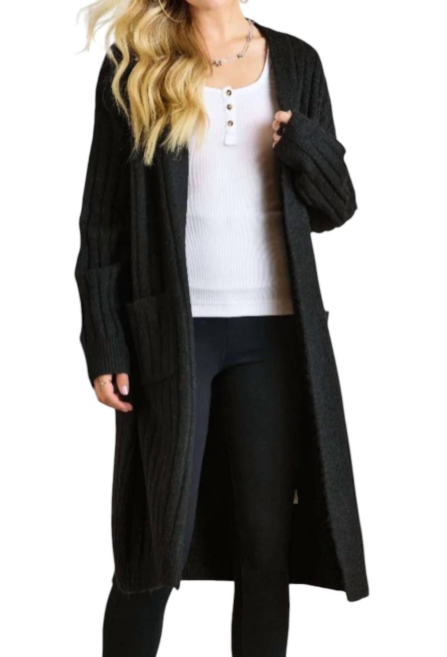 This cardigan will be a sweater-rotation favorite. Introducing the Women's Plus Size Ribbed Sweater Cardigan by ADORA, a perfect blend of style and comfort in classic black. This cardigan features long sleeves and a timeless ribbed texture, adding a touch of elegance to any outfit. Its open-front design with a pull-on closure is ideal for easy layering, while the V-neckline enhances its chic appeal. Perfect for casual or semi-dressy occasions, this piece is a must-have in your wardrobe.
