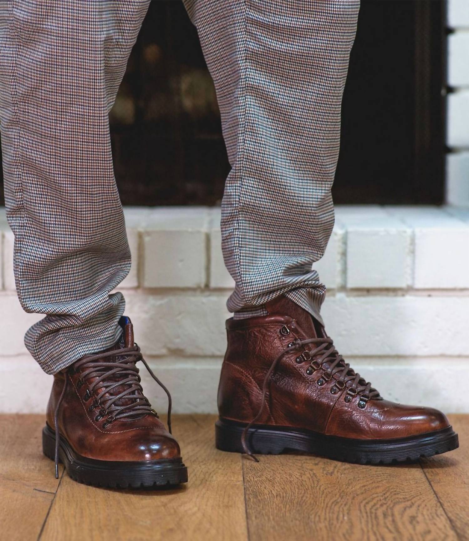 Lightweight hiker style boot. 8-hole d-ring hardware lace up. Thick shoelace. Blue lined interior. Cushioned insole. Veg tanned leathers. Keep your feet sweat. Odor free. Hand-finished leather upper. Leather lining. Lace-up closure. Breathable cushioned footbed. Grippy rubber outsole