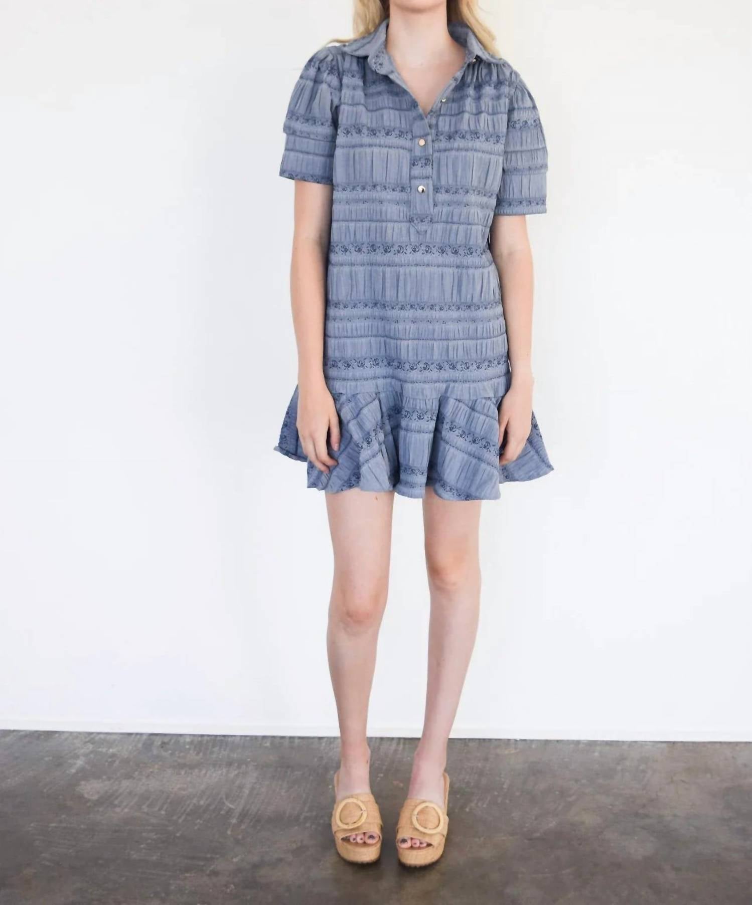 The kind of easy and flattering dress you'll be reaching for all season long. Embrace effortless style with the Everything Short Sleeve Dress by Never a Wallflower, presented in a chic Blue Floral Jacquard pattern. Featuring a collared henley-style neckline and short sleeves, this dress boasts a flutter hem and is crafted from premium jacquard fabric. Its mini A-line silhouette and playful design make it perfect for both workwear and vacation settings. Closure: Button closure.