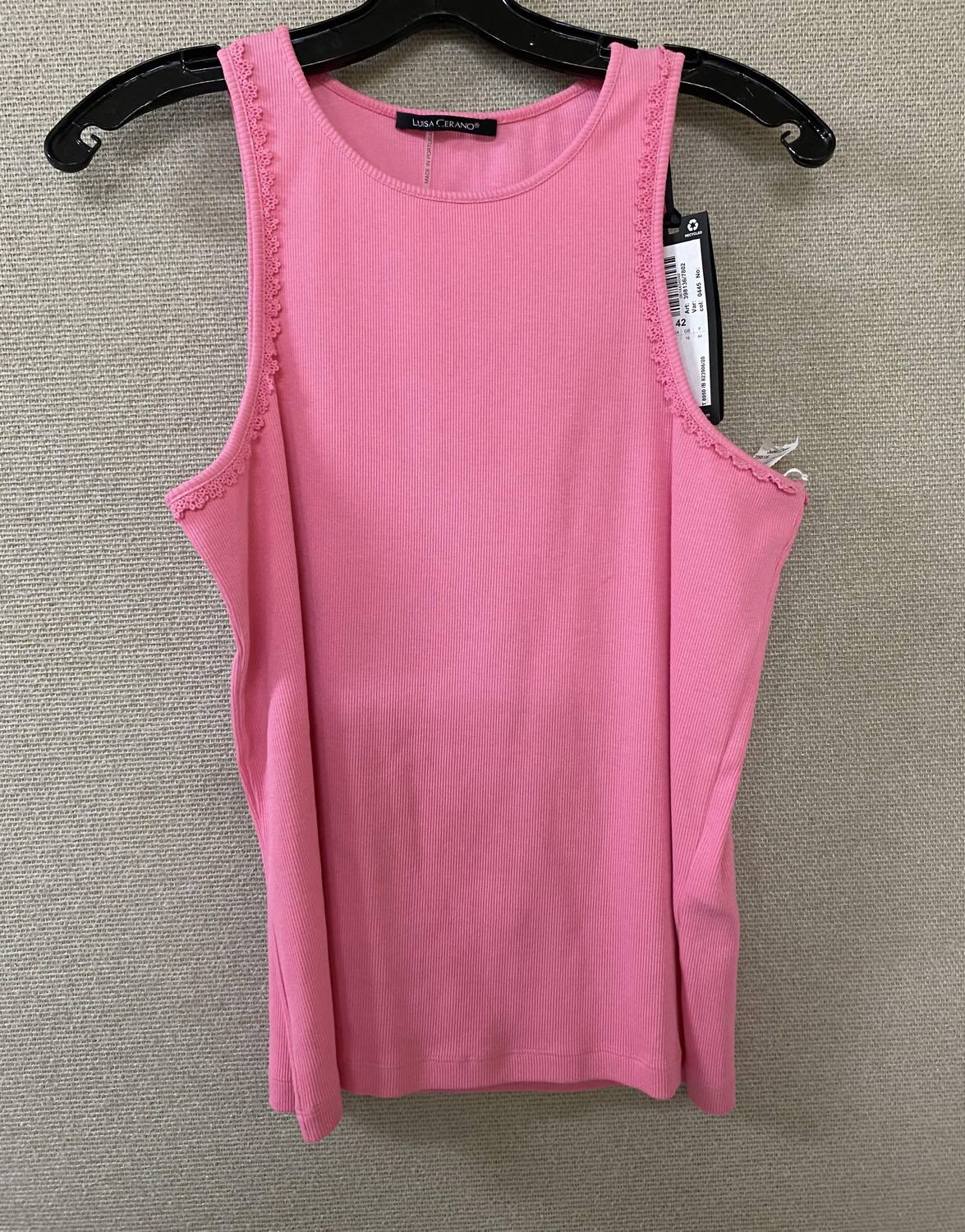 Fit, fabric and functionality. This tank top checks all the boxes. Embrace summer style with the LUISA CERANO Women's Sleeveless Tee Shirt, effortlessly blending both texture and elegance. This scoopneck tank comes in a vibrant pink, setting the perfect tone for a beach day outing. With its pull-on design, it's easy to wear and showcases a modern, maximalist trend. Perfect for laid-back occasions, this tee shirt is a must-have for any summer wardrobe.