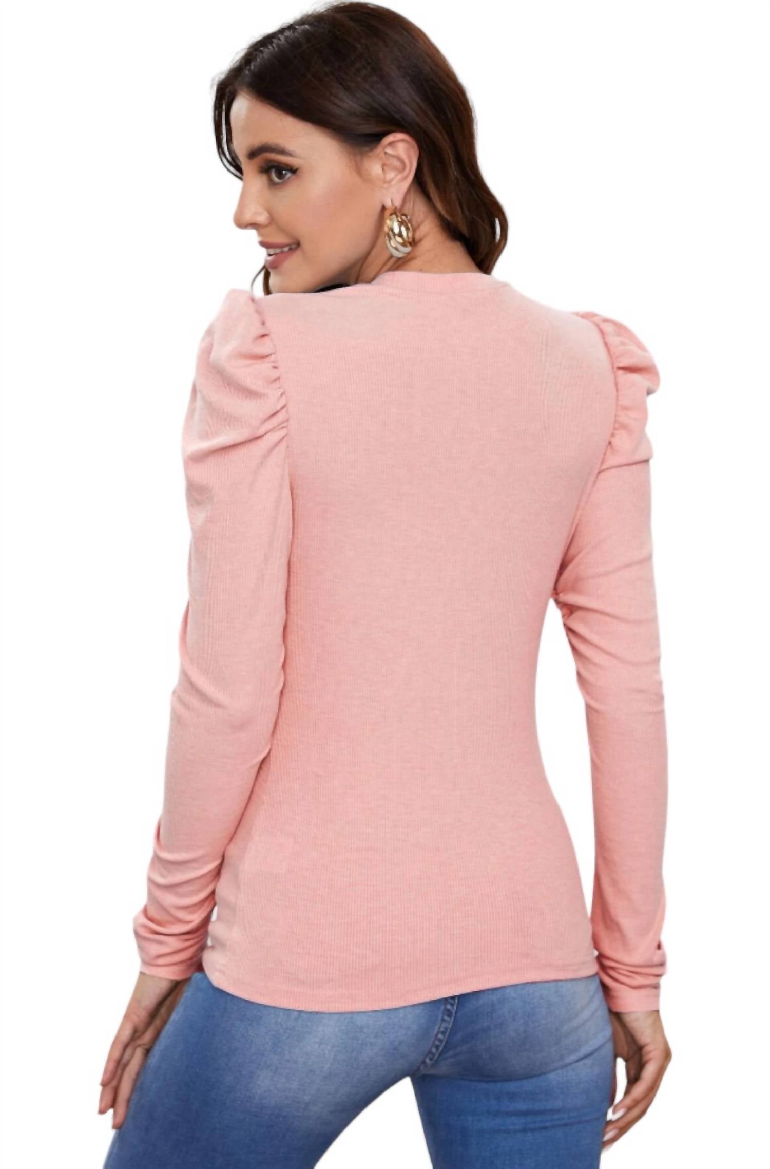 Perfect blend of elegance and comfort. Exquisite garment, drenched in a soft pink hue. Redefines simplicity with its chic round hemline and timeless ribbed texture. Standout feature, puffed ruffle sleeves. Playful yet sophisticated vibe. True to size and made for ultimate convenience with a pull-on closure. Ensures a flattering fit along with unmatched ease and comfort.