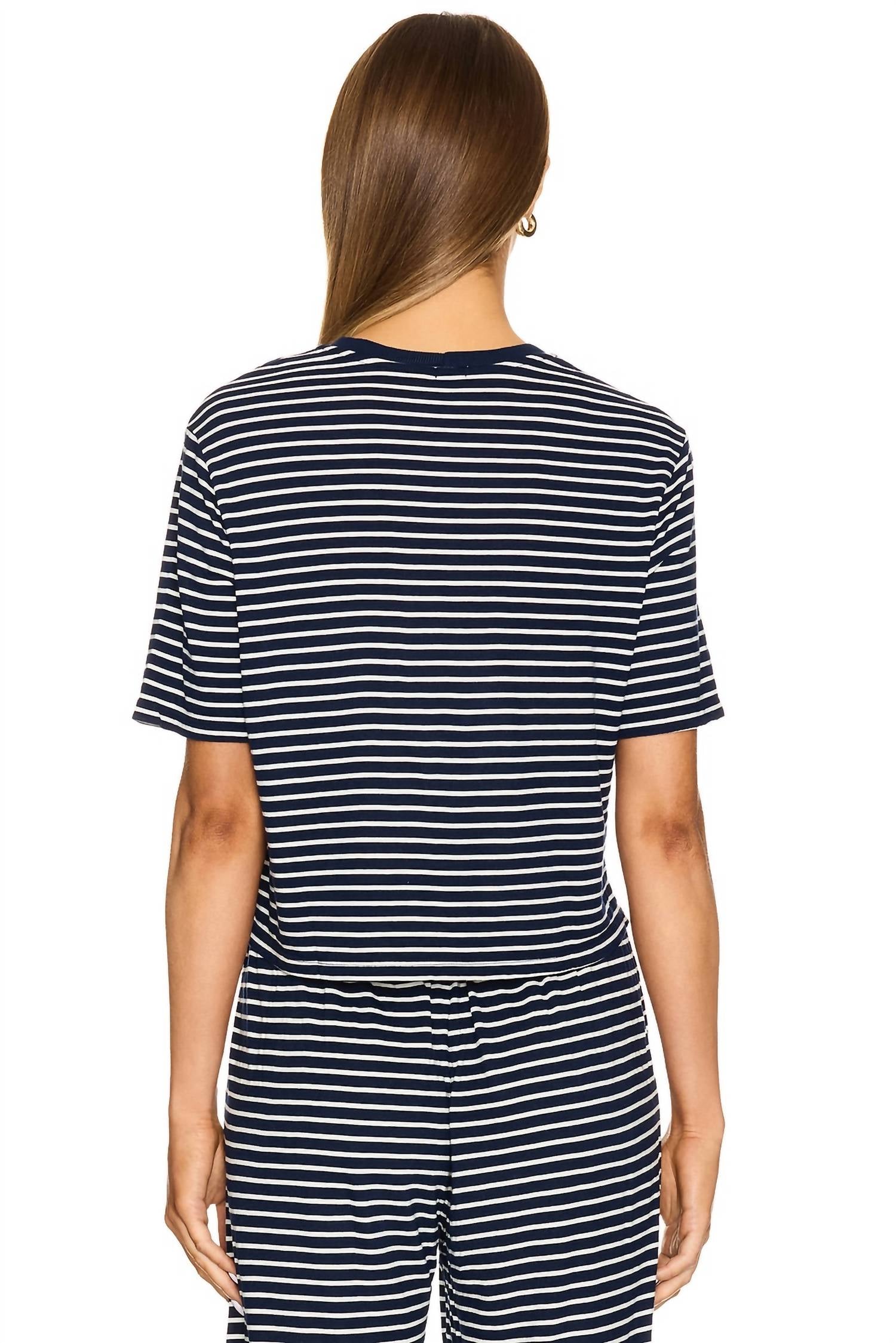 Look no further, you just found your perfect tee! Elevate your summer wardrobe with the MONROW Stripe Jersey Crop Pocket Tee, a perfect blend of comfort and style. This women's tee features short sleeves, a cropped body with a relaxed fit, and a practical pocket for a touch of boho chic flair. Made from a luxurious cotton blend of 50% organic cotton and 50% modal, it's crafted for breathable wearability. The tee showcases a classic crew neckline and a convenient pull-on closure. For care, machine wash as needed.