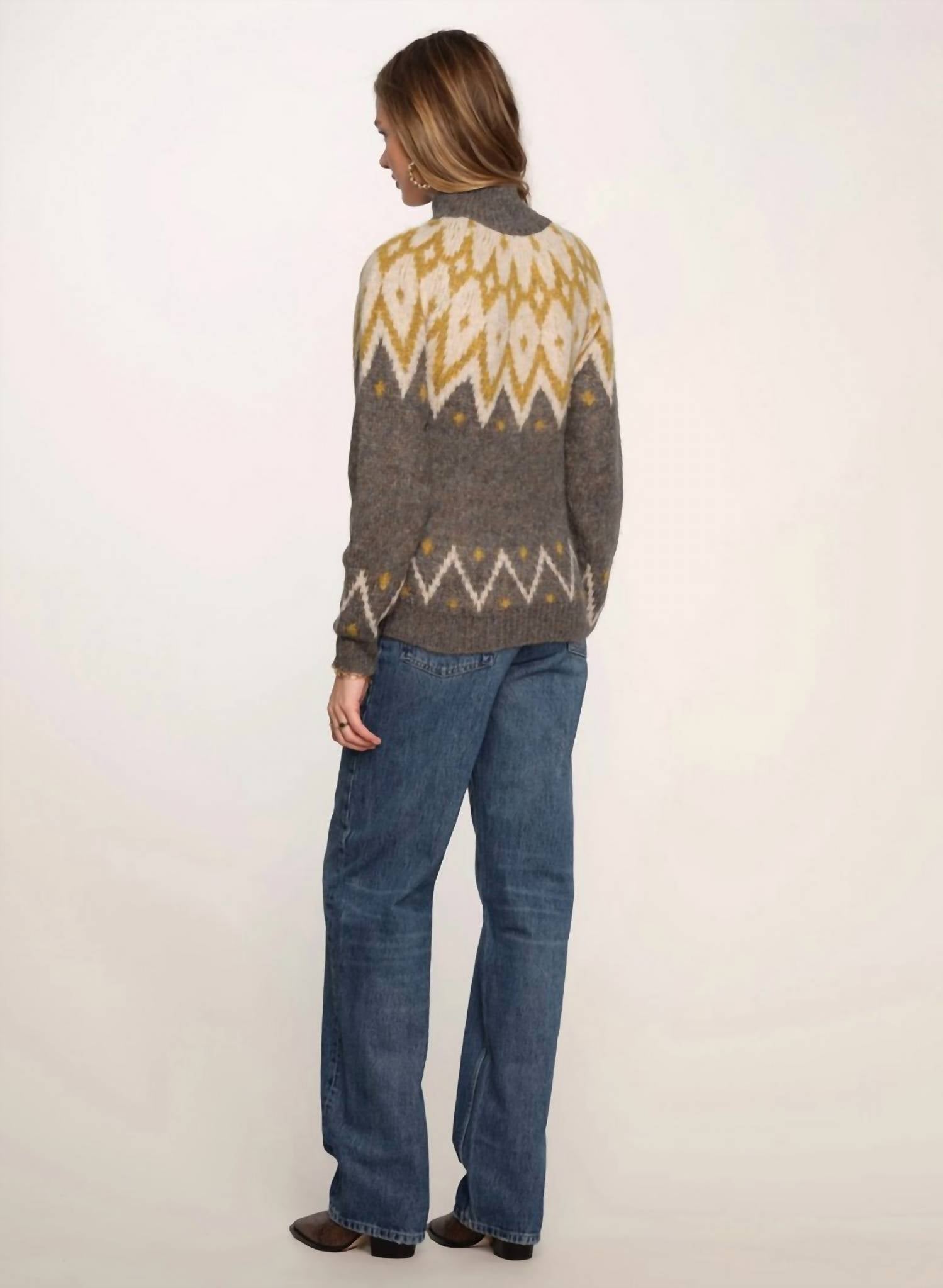 Experience the perfect blend of comfort and style with this trendy crew neck sweater, designed to effortlessly elevate your wardrobe. Pair it with your favorite denim and loafers for the perfect look. Discover the Emory Sweater by Heartloom, a relaxed-fit pullover in a captivating twilight hue. This style boasts a geometric pattern with long sleeves and a cozy mock neck collar, adorned with unique novelty buttons on the raglan seam. Made of a melange knit blend of 58% acrylic, 30% nylon, and 12% wool, it offers a comfortable garment length of 22 inches. Closure: Pull on. Care: Machine wash cold, lay flat to dry.