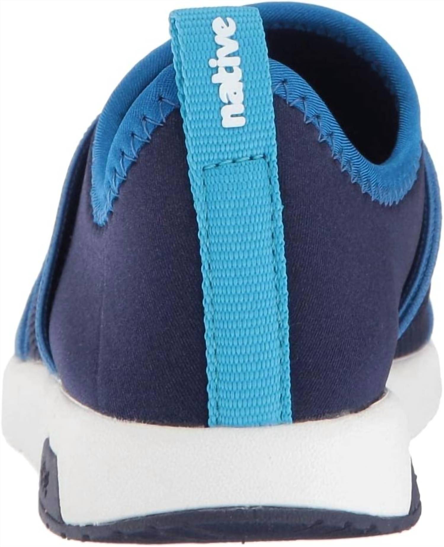 Introducing the Kids Phoenix Shoes by Native, a stylish choice for boys this spring season. Designed with a sporty streetwear vibe, these sneakers feature a round toe shape and come in a vibrant Regatta Blue/Victoria Blue color. Ideal for engagements and Easter celebrations, the flat heel ensures all-day comfort. Perfect for adding a pop of color to any spring outfit.