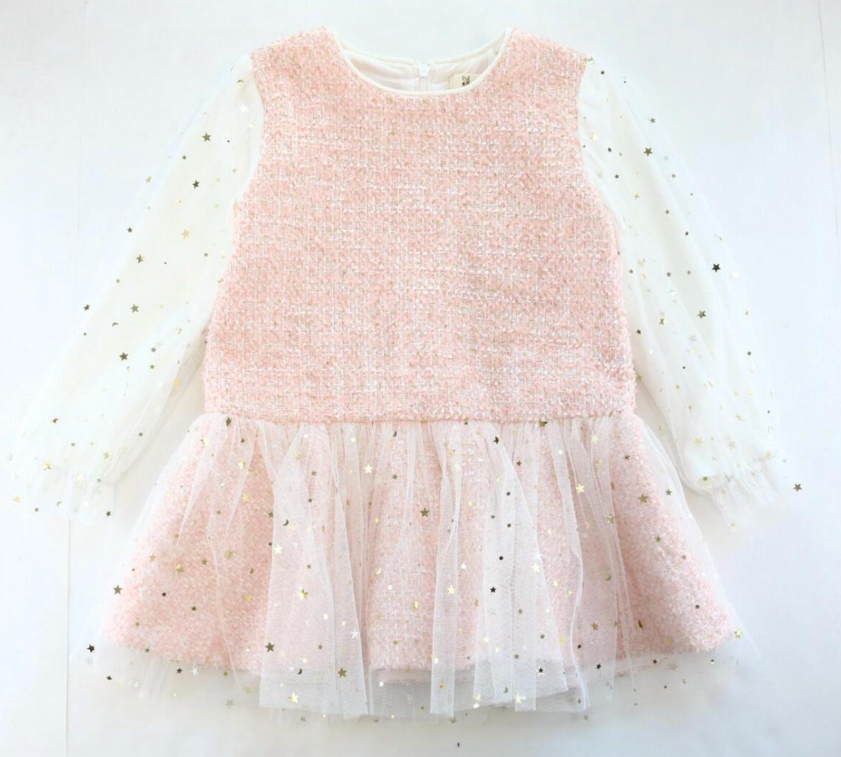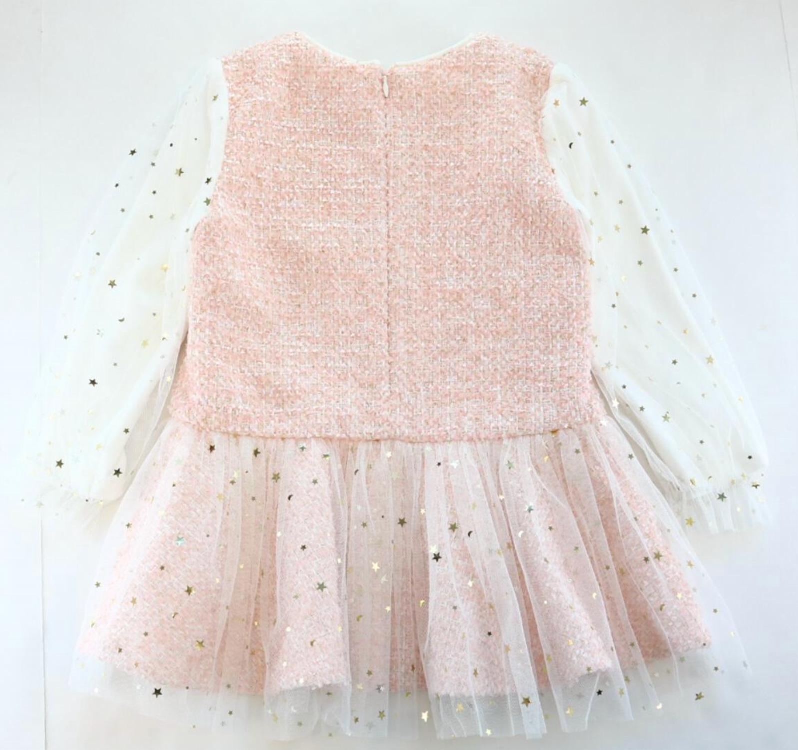 Doe a Dear Star Mesh Long Sleeve Pink Tweed Dress