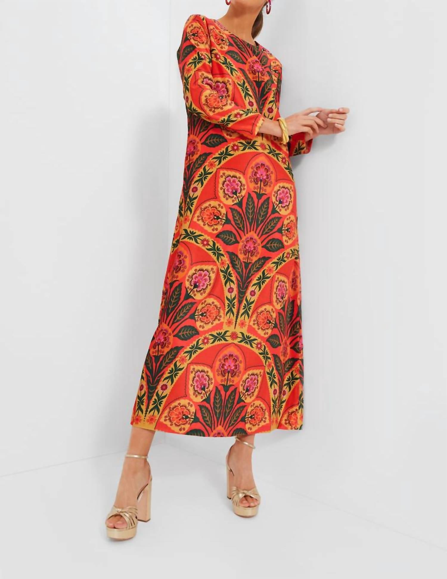 Who doesn't love a good maxi dress? This one you'll be reaching for season after season. This women's dress features long trumpet sleeves and a convenient back zip closure with hook and eye, perfect for any occasion. With a shift silhouette and side pockets, it combines style and practicality. Care for this maxi dress by opting for dry cleaning to maintain its elegance. 90% viscose, 10% lurex.