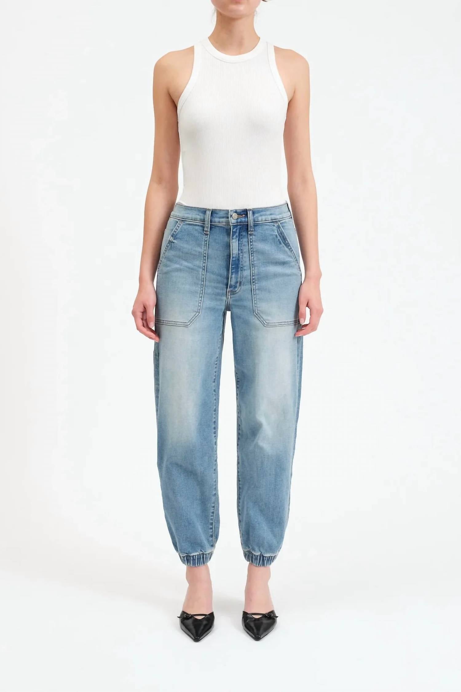 Pair these with your favorite sneakers for an effortlessly cool look. Introducing the DAZE Champ High Rise Jogger in a stylish Wings color, an excellent choice for effortless chic. Crafted from Cotton, these joggers feature utility-inspired pockets and a solid pattern with tapered, cinched ankles for a refined look. Designed for versatility and comfort with DAZE's Hug fabric, they offer a flexible fit that hugs your body while retaining structure. Closure is secured with a button, and care instructions recommend machine washing with tumble dry for easy maintenance.