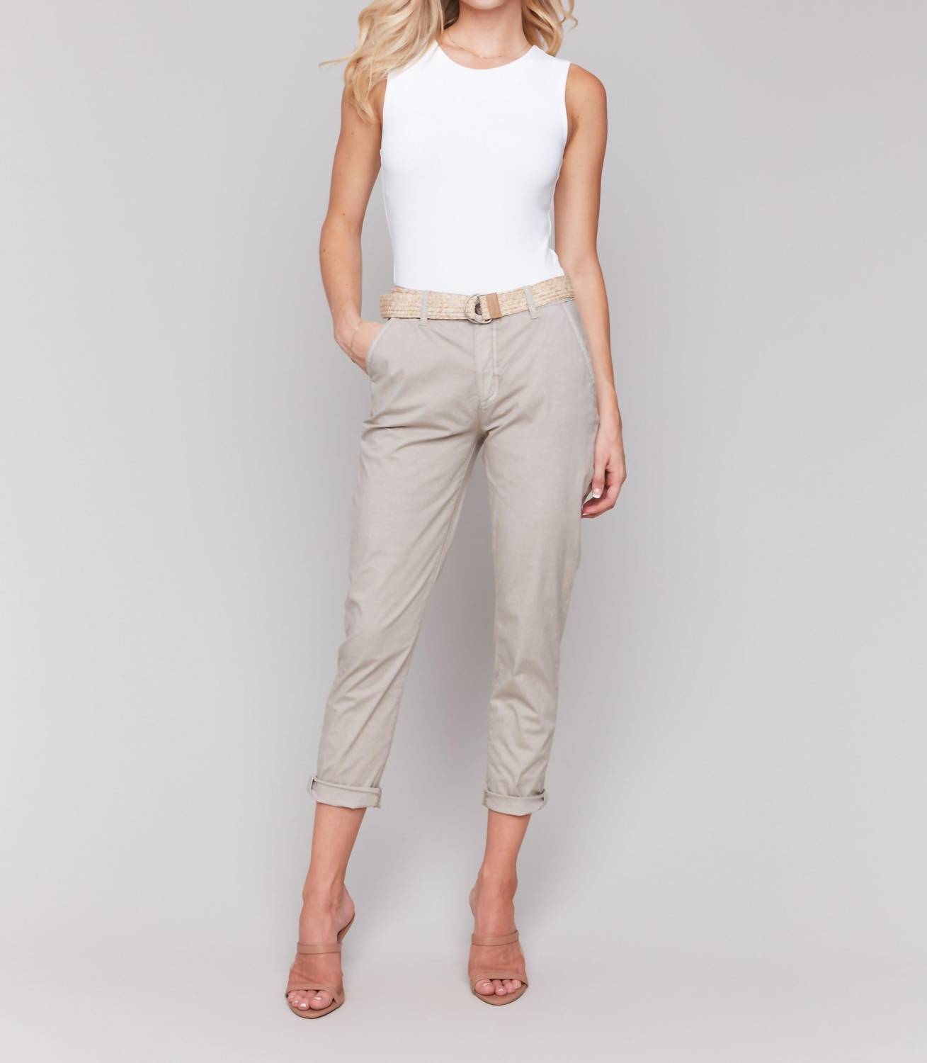 A perfectly tailored straight leg that you'll want in every color! Featuring a chic slim fit with a cropped design, these pants include a fashionable woven belt and practical front pockets. Crafted from a stretch cotton blend, they provide comfort and a flattering slim silhouette with a regular rise of 10.5 inches and an inseam of 28.5 inches. Machine wash.