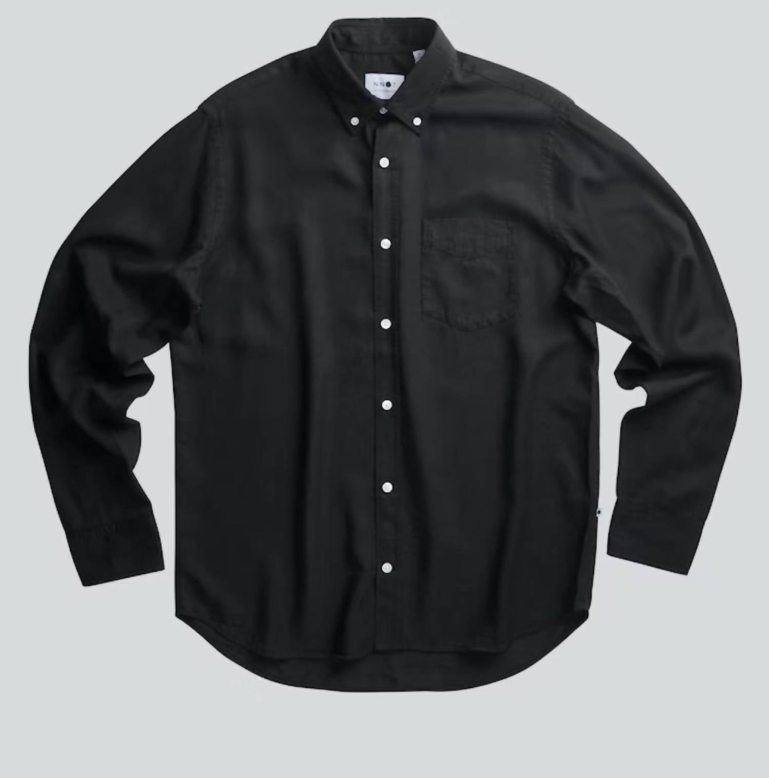Meet the Levon Button Down Shirt by NN07, a sophisticated choice for the modern man in solid black. Designed with long sleeves, this shirt features a slim cut silhouette crafted from vibrant garment dyed TENCEL™ Lyocell, showcasing the brand's commitment to sustainable production. Closure: Button closure provides a classic touch. Care: Specific wash and dry instructions are not provided.