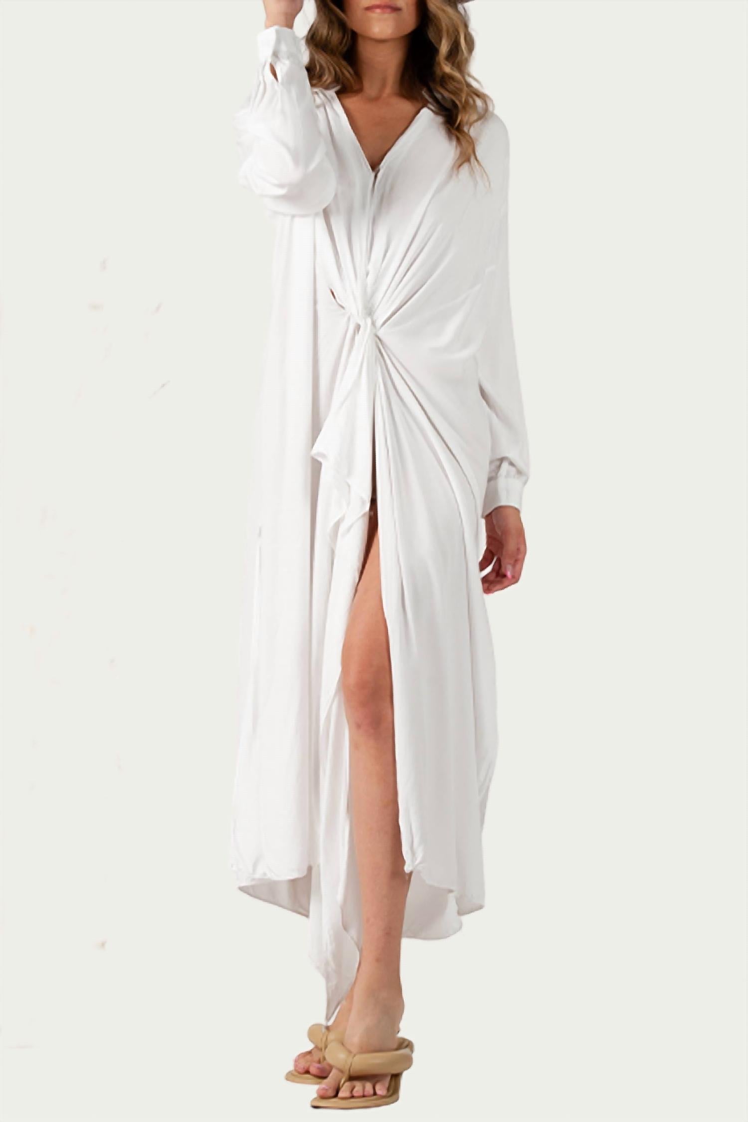 Made of lightweight modal, it is knotted at the center and has a thigh-high split. Fabrication: 100% RayonCare: Hand wash cold, lay flat to dryStandard Clothing Sizing
