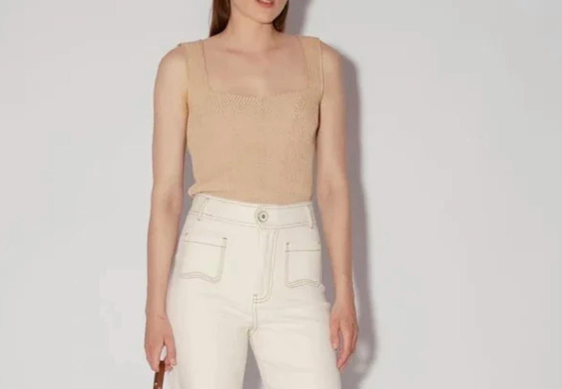 Show a little skin in this cute and casual crop top. Experience the effortless elegance of the Josephine Top by Magali Pascal, rendered in a soft blush tone. This sleeveless top is crafted from a viscose blend with a solid pattern and features a square neckline and wide shoulder straps for a flattering fit. With a pull-on closure, this piece is a versatile wardrobe staple for summer vacations. Care for this delicate garment with a cold hand wash; avoid bleach, and use a cool iron on the reverse side. Model is 5'9" and wears a size small.