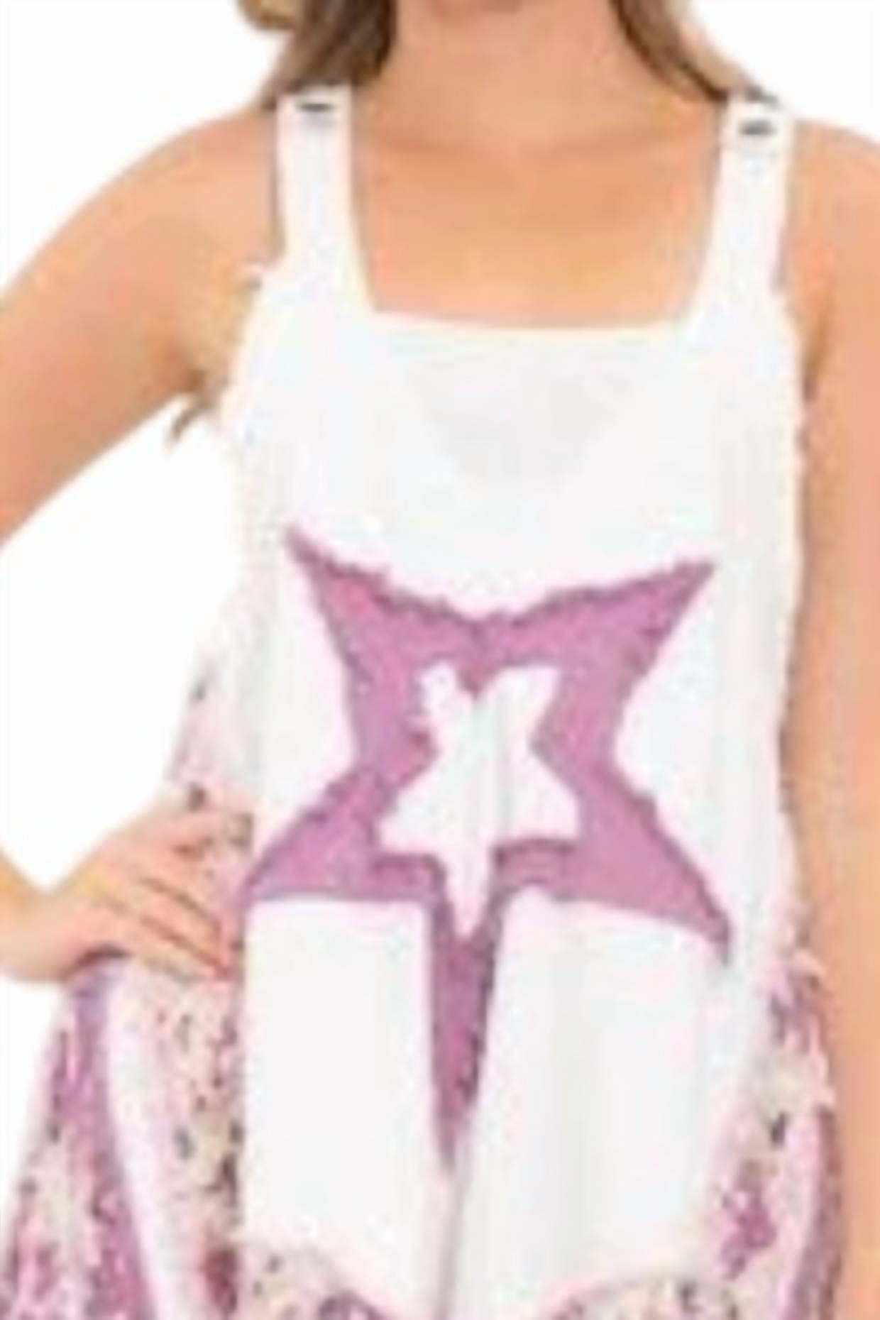 Easy, stylish and comfortable? We love a good pair of overalls. Embrace '90s fashion with the Star Patchwork Overalls by Blue Velvet, perfect for a spring getaway. These offwhite overalls feature an oversized, relaxed fit and a playful patterned design. With a pull-on closure, they offer effortless style without pockets. Ideal for New Year's Eve vacations, they are a trendy addition for fashion-forward women.