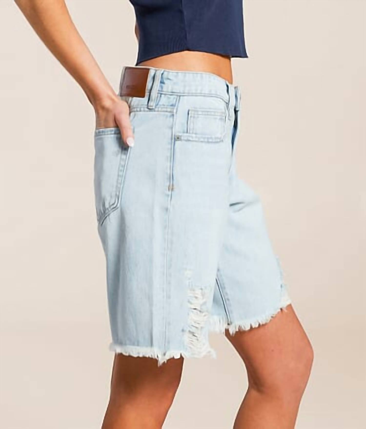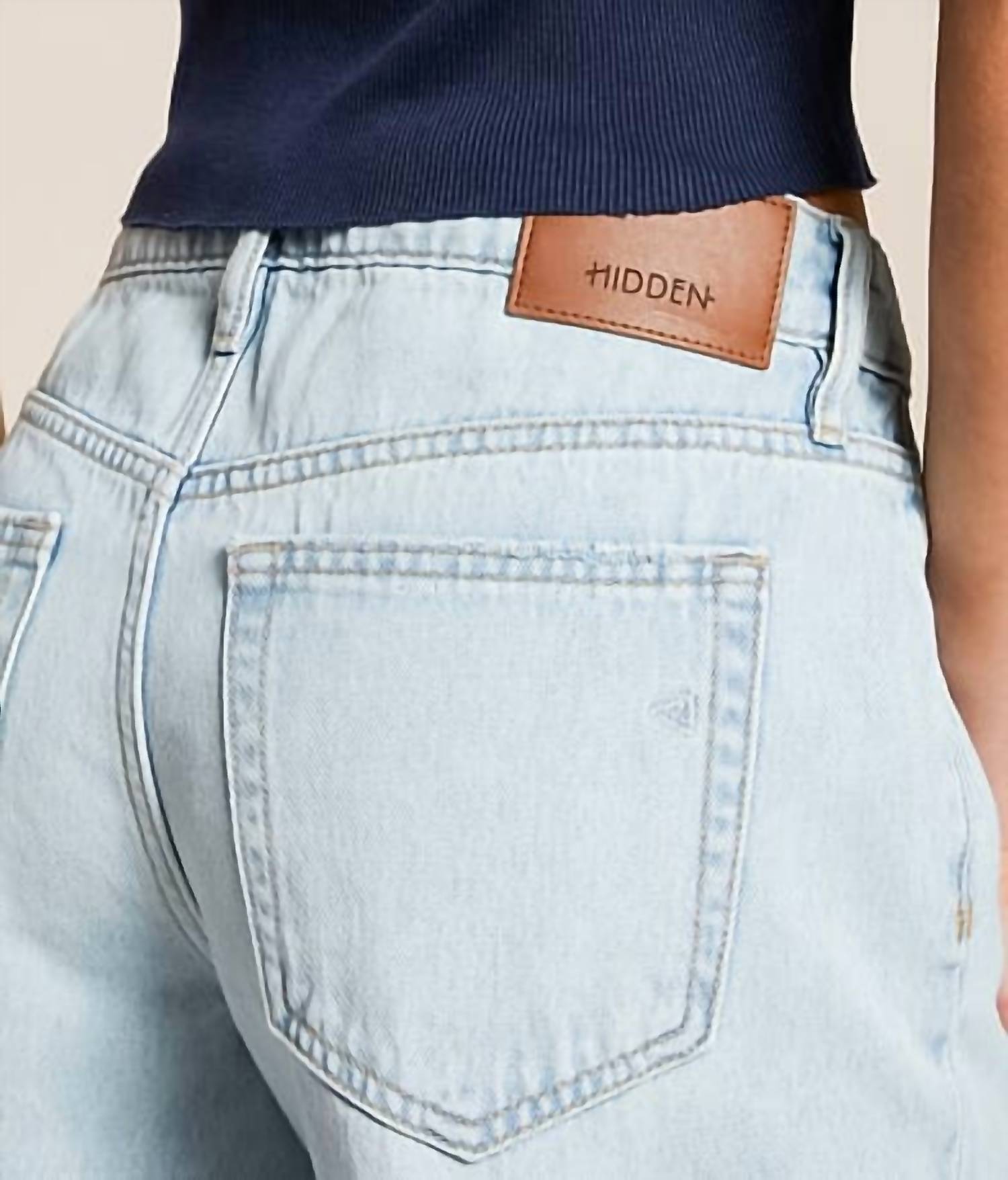 Jean shorts so versatile, you can literally wear them with anything. Stay on trend this summer with the Alyx Baggy Shorts by HIDDEN, a perfect addition to your warm-weather wardrobe. These women's jean shorts feature a low rise and baggy silhouette in a medium light color, boasting a comfortable longer inseam ideal for casual outings. Crafted from 100% non-stretch cotton, the rigid denim is designed to hold its shape beautifully and develop a unique fade over time. Closure: Button. Care: Machine wash and tumble dry.