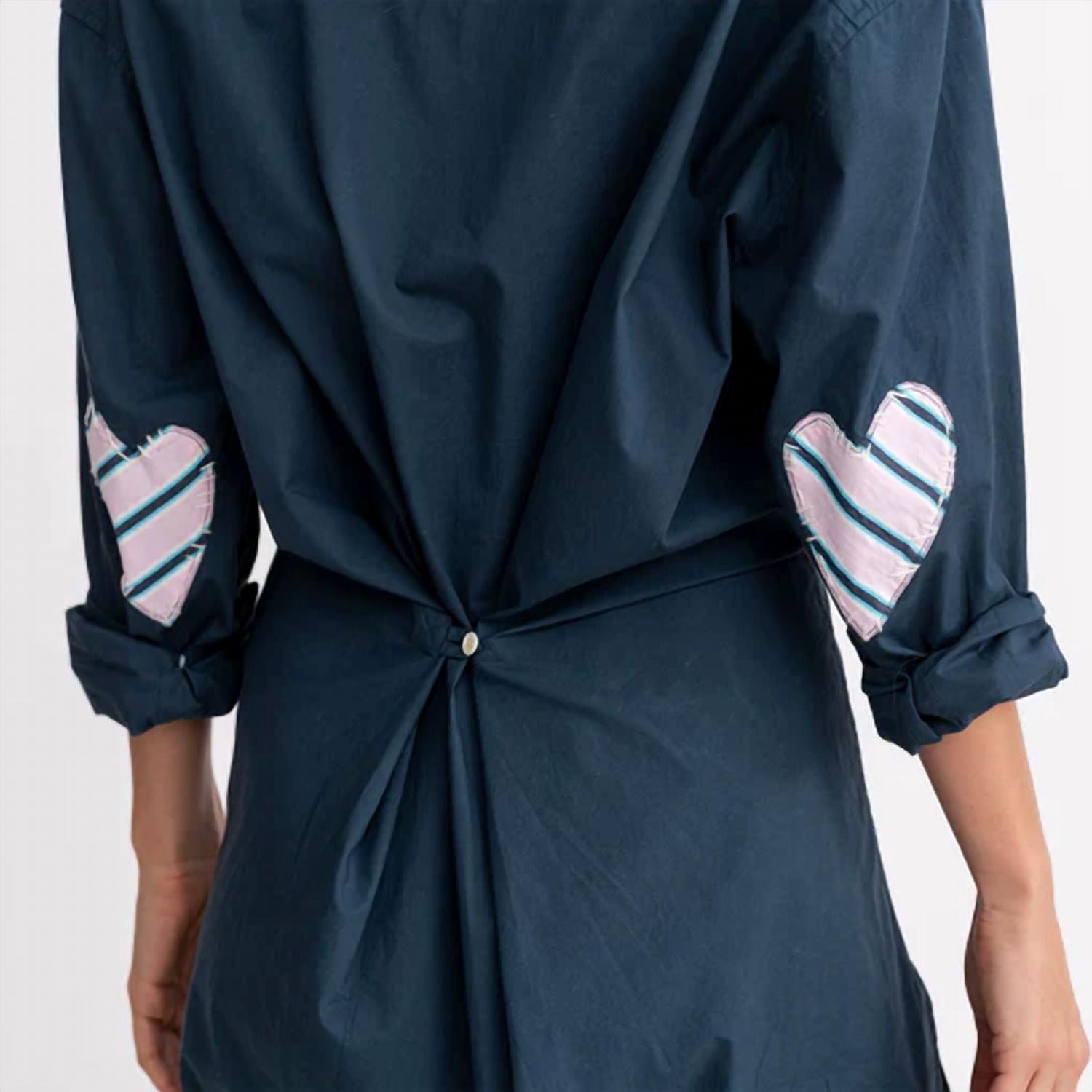 The perfect mini dress for those warmer months. 100% cotton. 38 1/2" front length (size small). Collared. Long sleeves. Button down front closure. Striped.. Once you have it on, you have the option to button the front and the back, to create a more fitted look. Machine wash cold. Imported. Model is 5'4" and wearing size small