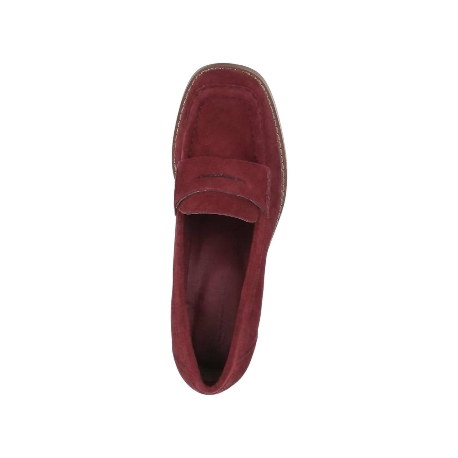 Elevate your wardrobe with the Women's Irene Penny Loafer Heels by CHOCOLAT BLU, a sophisticated blend of classic and contemporary style. These shoes feature a leather upper and lining with a rubber sole, and are imported for assured quality. Perched on a 2 1/2" heel with a 1/2" platform, these loafers promise comfort with a cushioned footbed. Perfect for transitioning from desk to dinner in bordo suede, these chic loafers redefine street-savvy elegance.