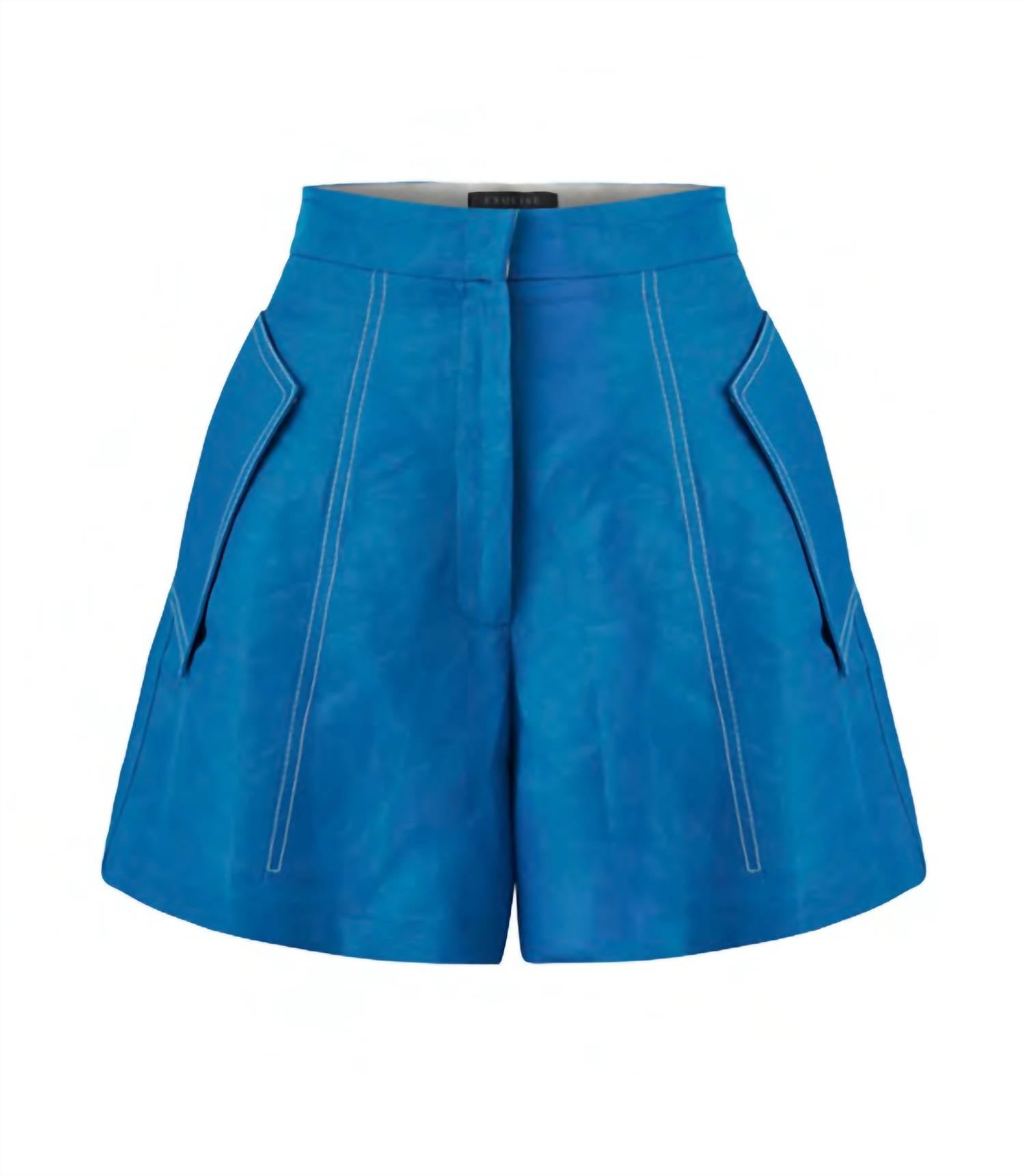 High-waist is here to stay and we especially love this style short. Delightful blend of style and comfort, perfect for a summer beach day. Crafted from a blend of linen and viscose. High-waist shorts feature a playful blue hue, making them a standout piece. Includes both front and back patch pockets for practicality, and they close securely with a hook and eye. Simply machine wash to keep them looking their best. Enjoy an inseam measurement of 5.75 inches, ideal for a boho chic look.