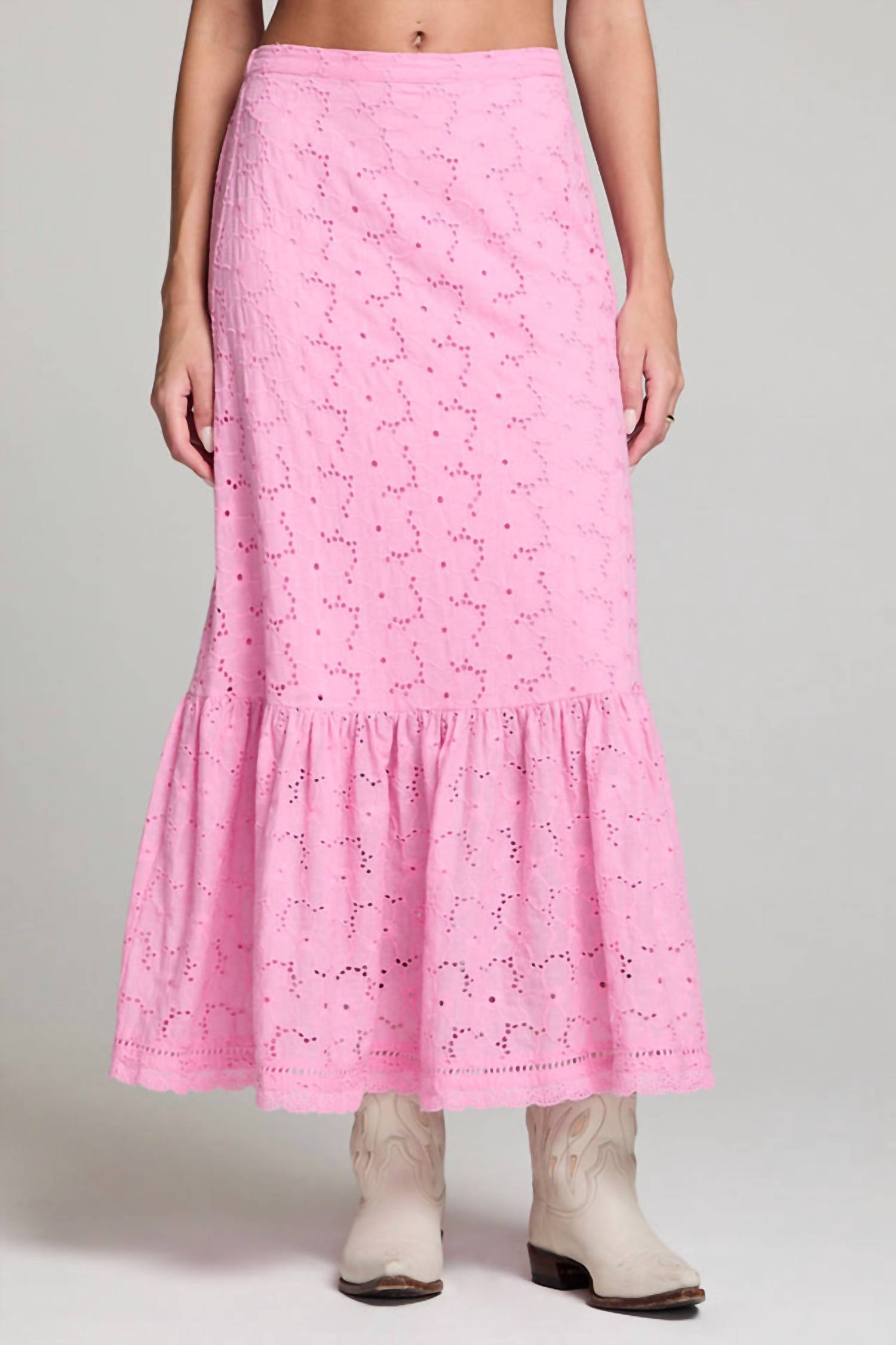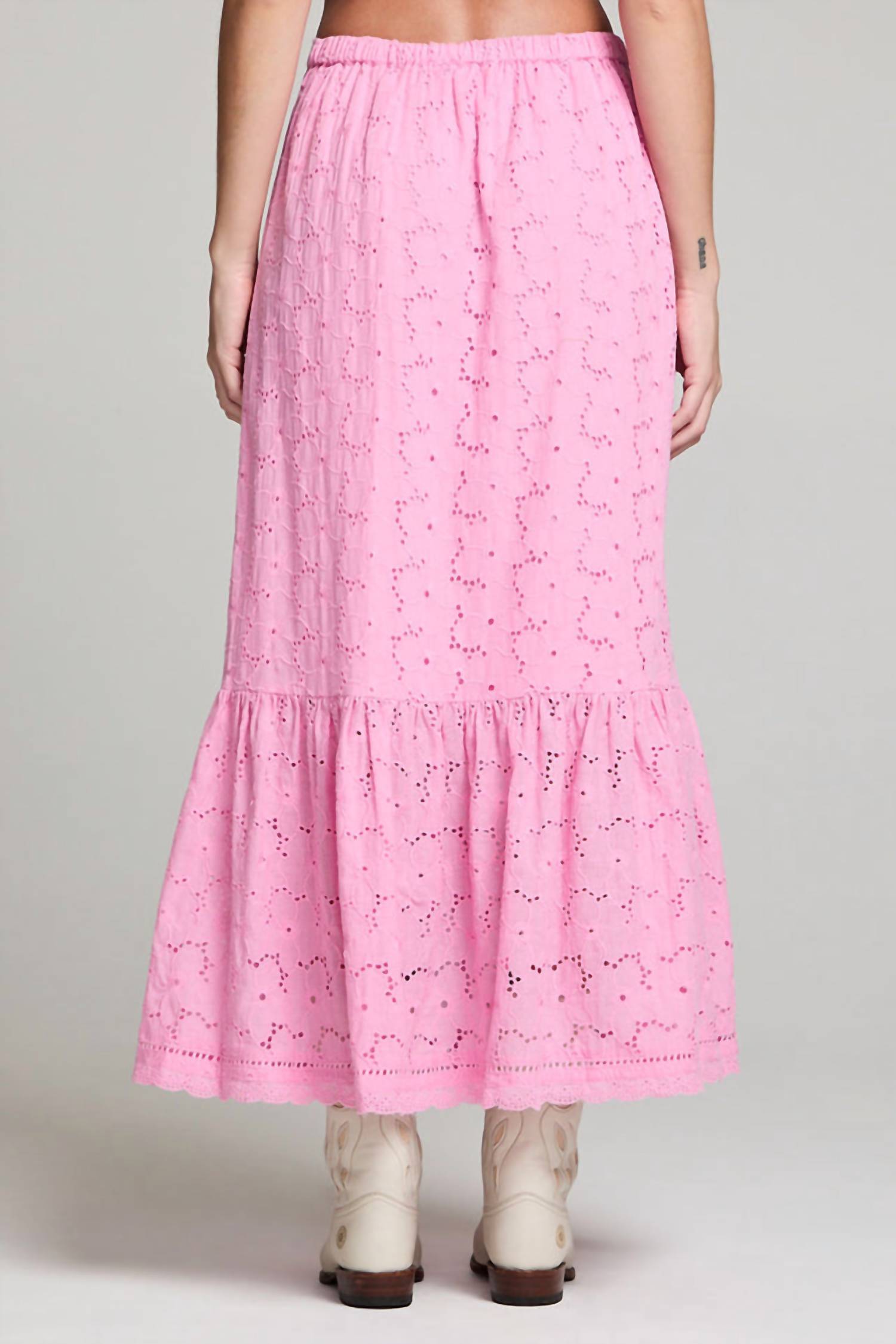 Flowy, comortable and stylish. This maxi skirt is a fan favorite. Step confidently into elegance with the Tatumn Maxi Skirt by saltwater LUXE, crafted in a charming Lace Peony hue. This skirt is made from 100% Cotton, designed to flow gracefully with each step, and features a textured pattern that exudes feminine charm. Originating from unspecified origins, it offers a seamless fit with its pull-on closure and includes a soft inner lining and elastic waist for added comfort. Care for this exquisite piece by machine washing and laying it flat to dry. Model is 5'9" and wearing a size small.