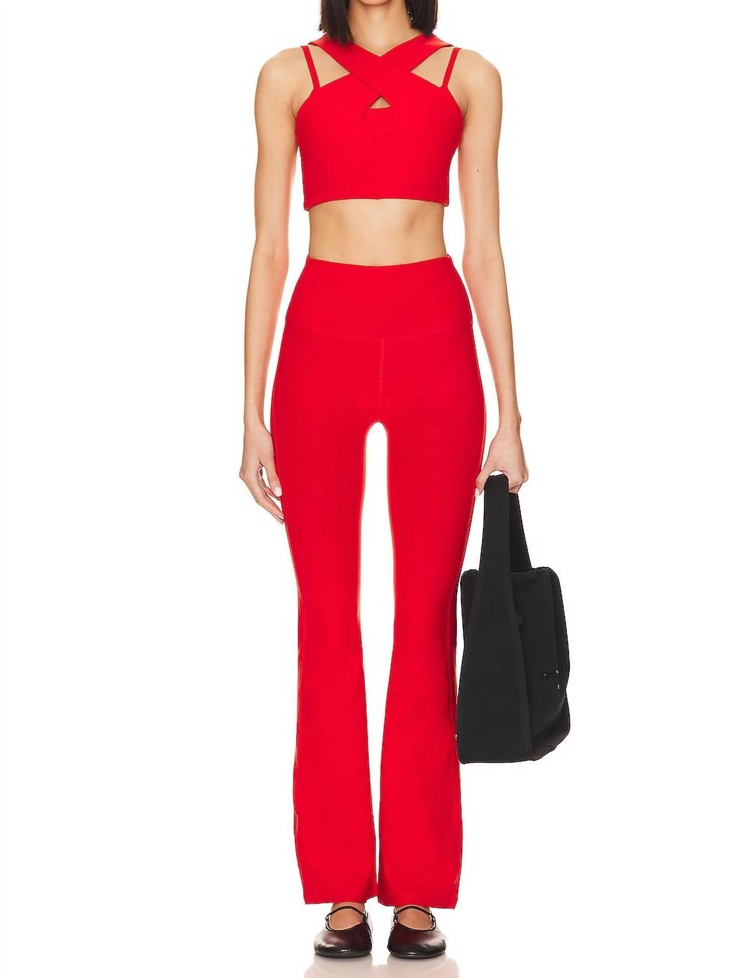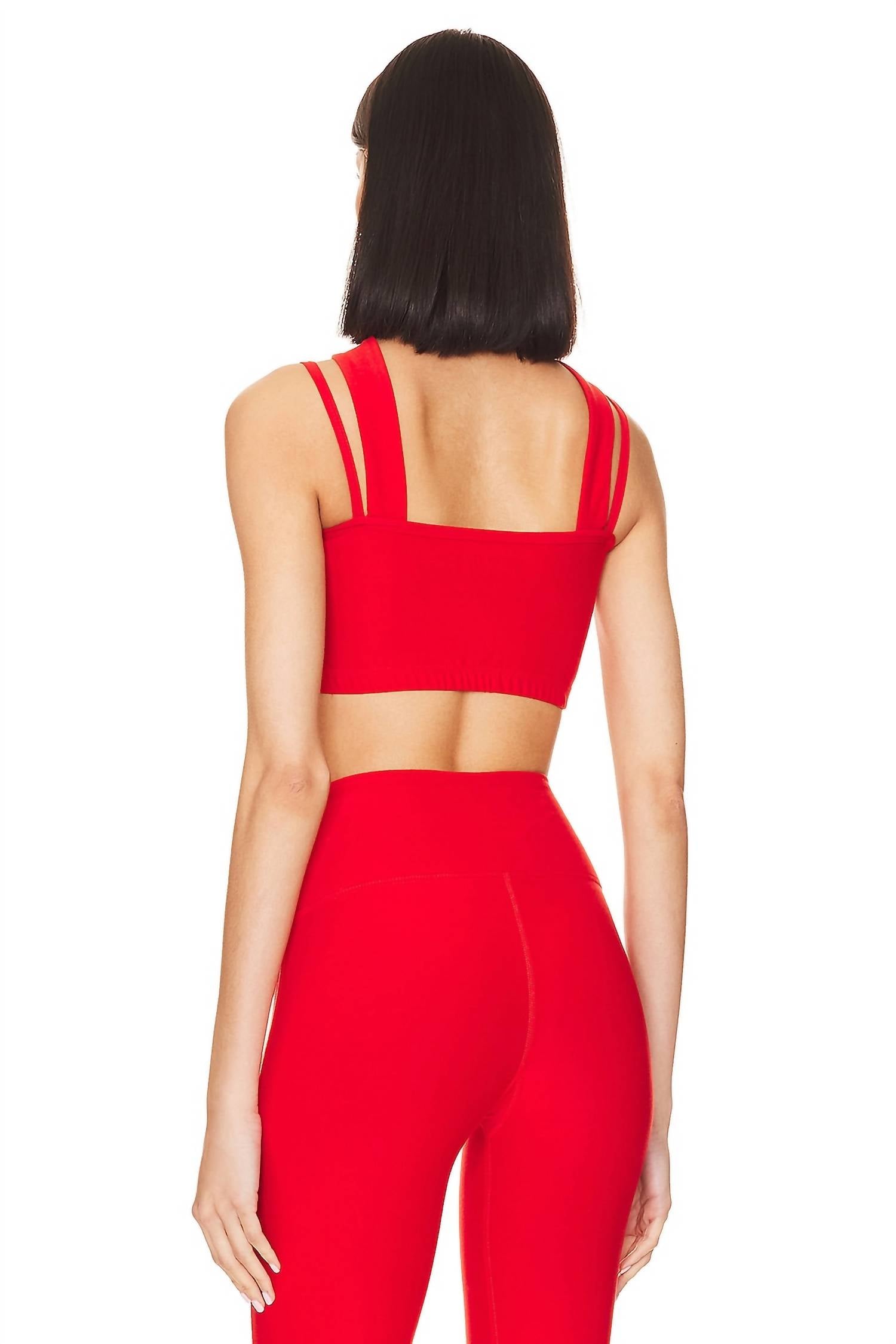 A sports bra that has it all - style, function and support. Elevate your workout with the Stretch Double Bra by YEAR OF OURS, designed for women who demand performance and style. This high-impact sports bra, crafted in the USA, features a scoop neck and racerback with double straps for superior support. Composition: 87% Polyester, 13% Spandex, providing a medium-weight, moisture-wicking fabric that allows for flexibility and maximum dryness. Machine wash cold with like colors, do not bleach, lay flat to dry. Available in a striking red solid color.