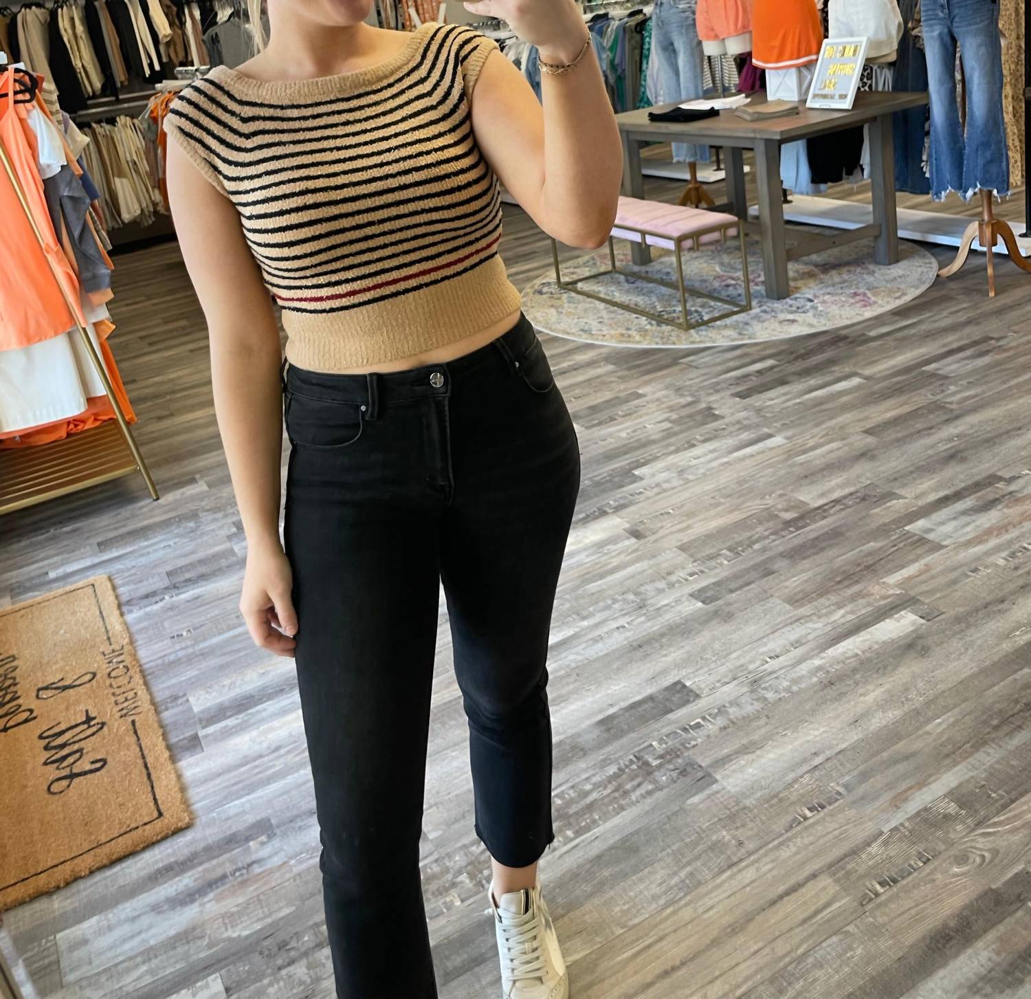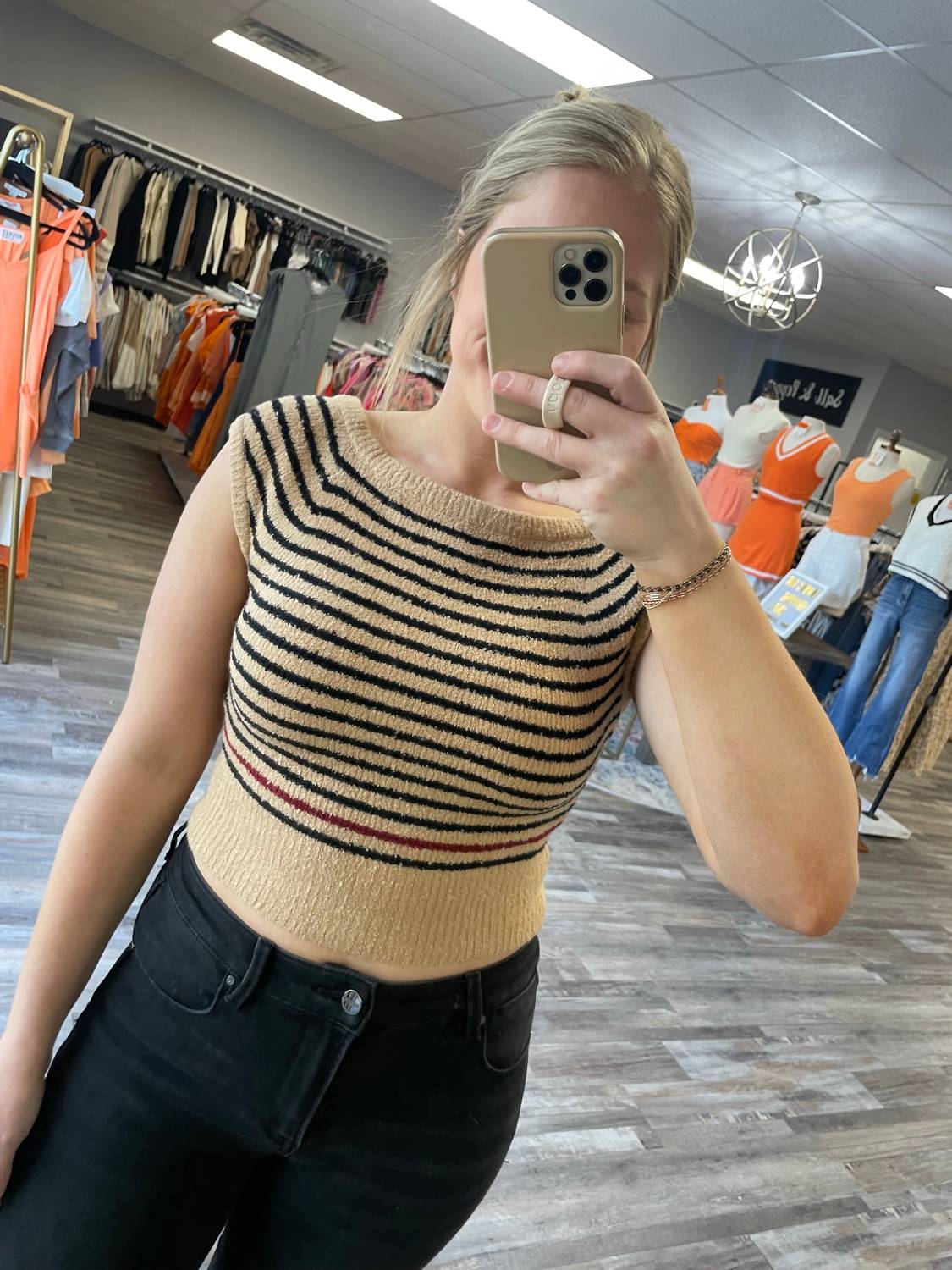 Olivaceous - Cropped Striped Cap Sleeve Top